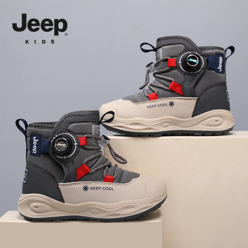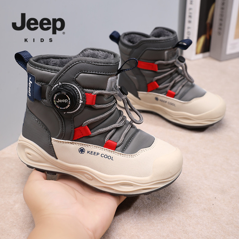 Jeep男童雪地靴冬季新款东北儿童大棉鞋加绒保暖防水男孩户外棉靴