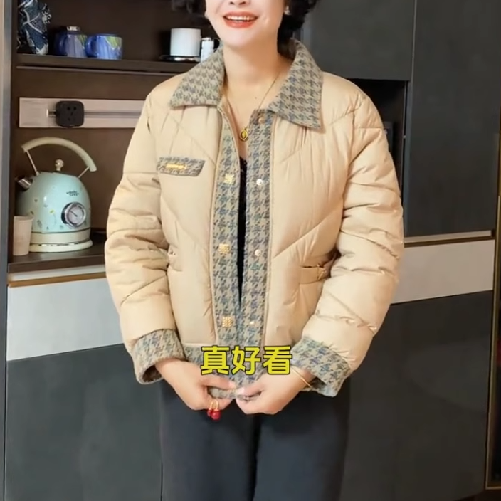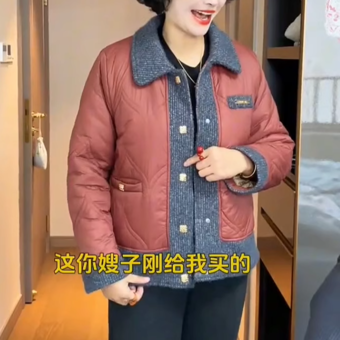 妈妈冬季羽绒棉服短款小香风棉衣2025新款中老年女装加绒加厚外套