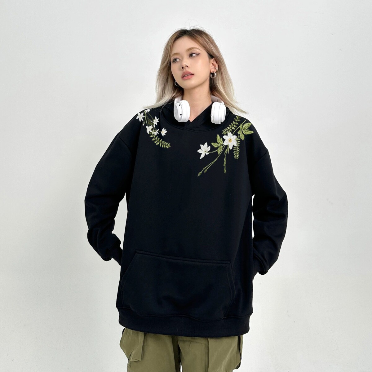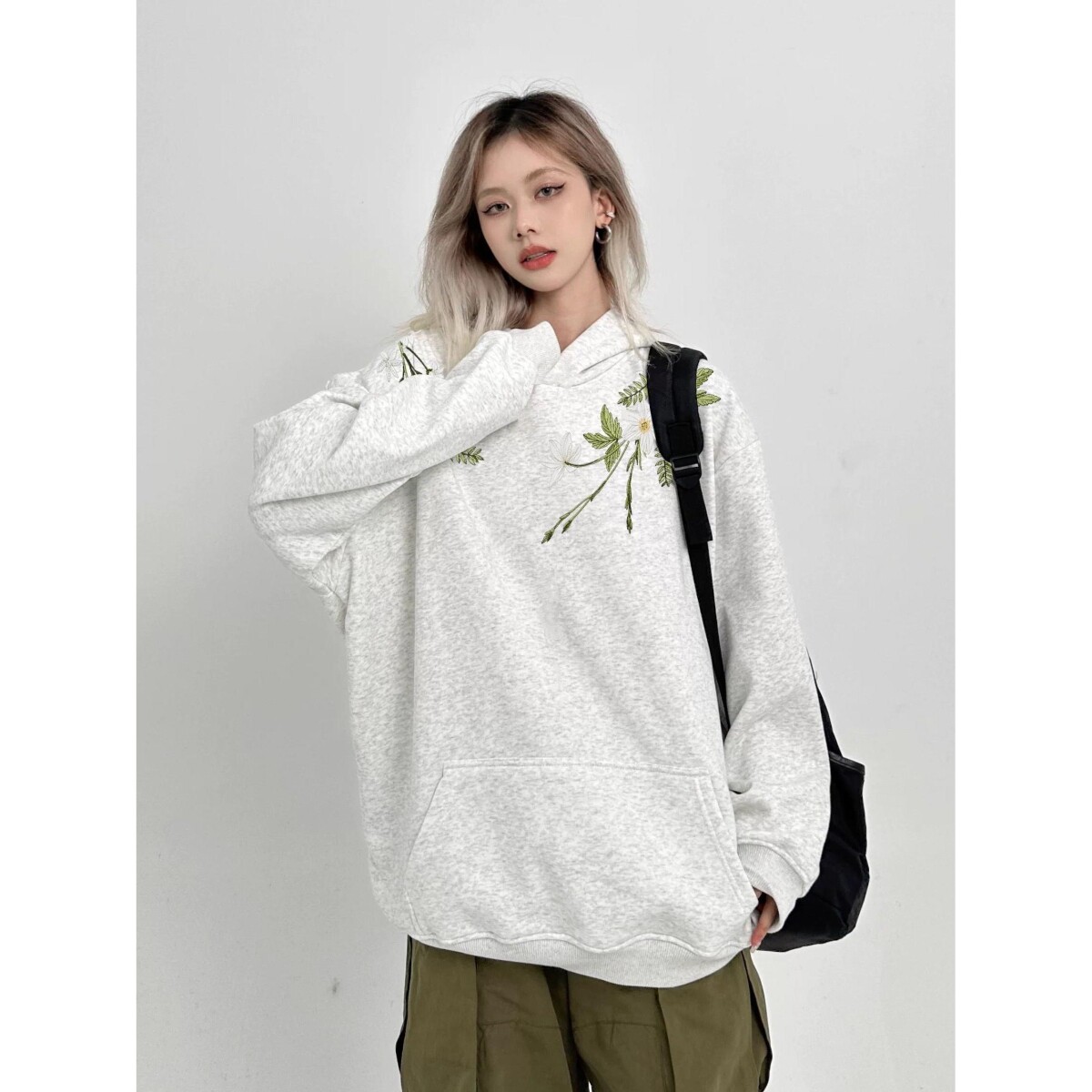 中式重工花卉刺绣连帽卫衣女款秋冬季加绒宽松休闲学生情侣装上衣