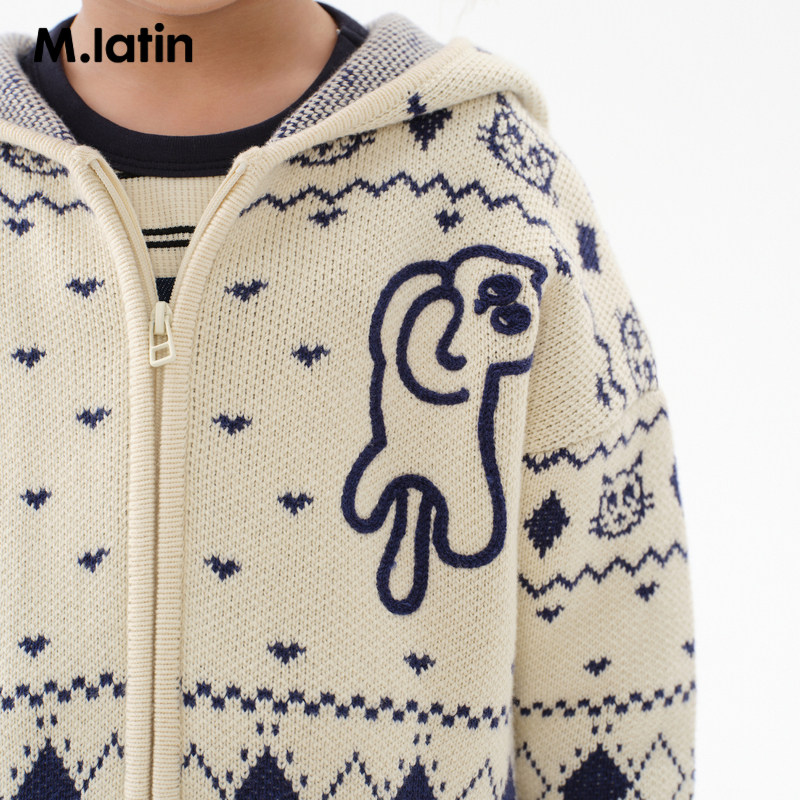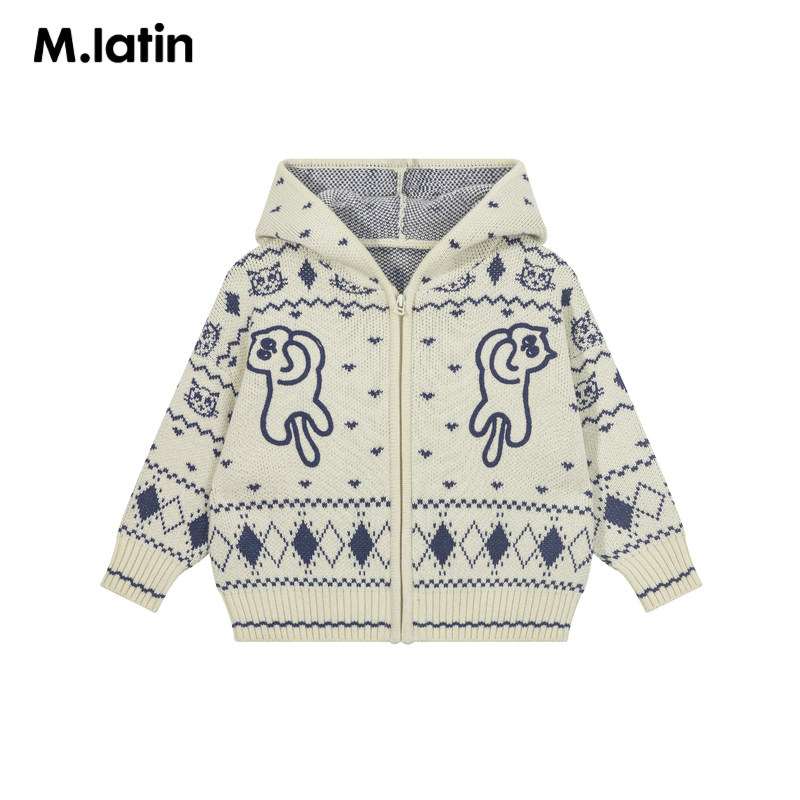 311线报网描述:猫咪图案提花设计费尔岛毛衣外套,趣味可爱