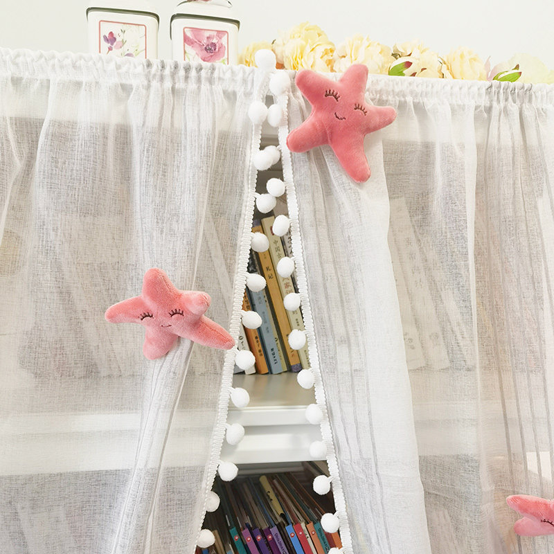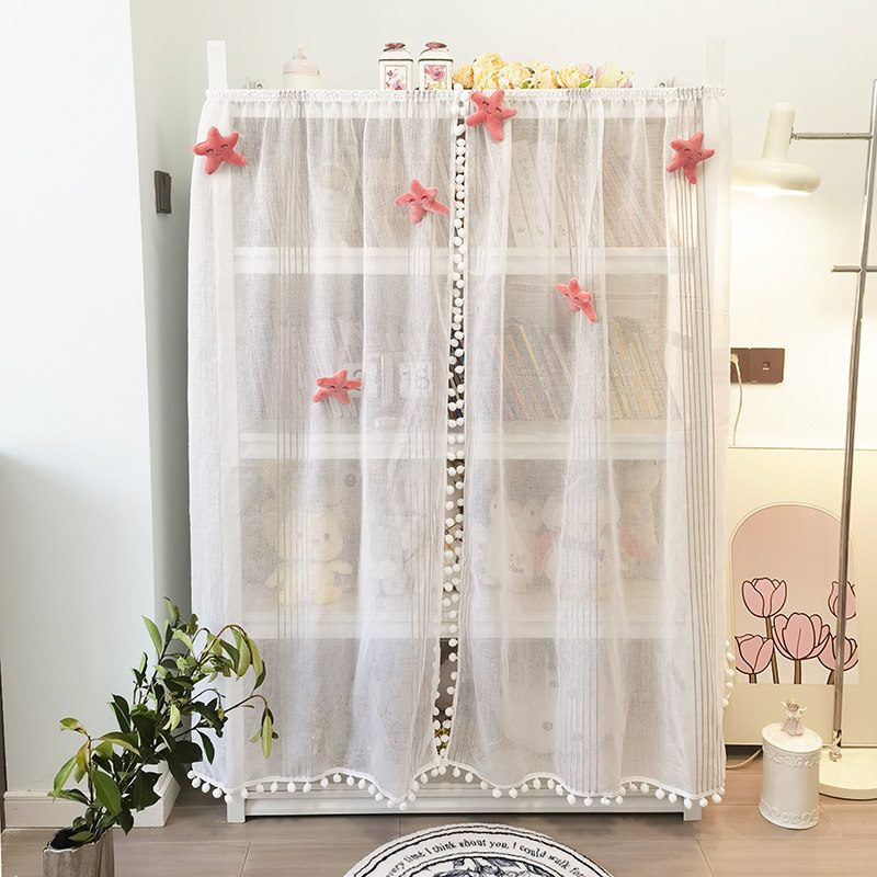 可爱书柜遮丑帘绘本架防尘帘梦幻帘挡灰穿杆帘装饰纱帘厨房半帘