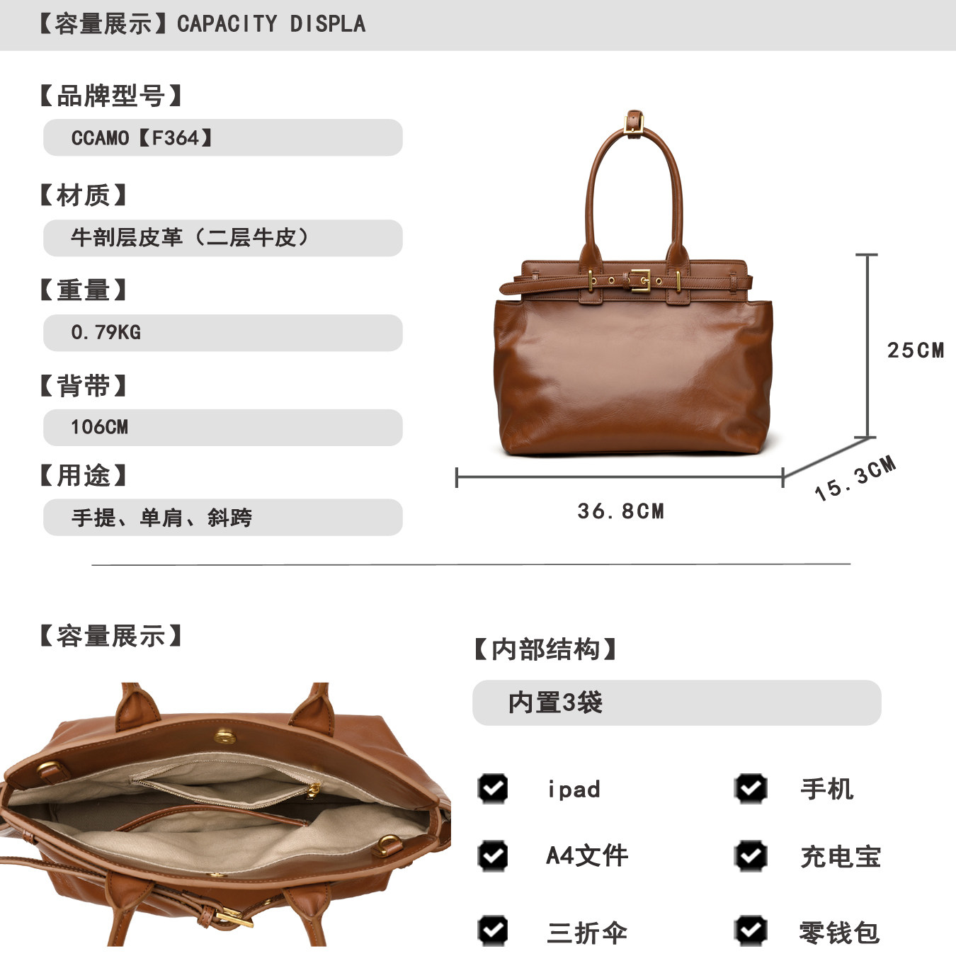 CCAMO真皮包包女款大容量包包轻奢小众高级感通勤女包手提单肩包