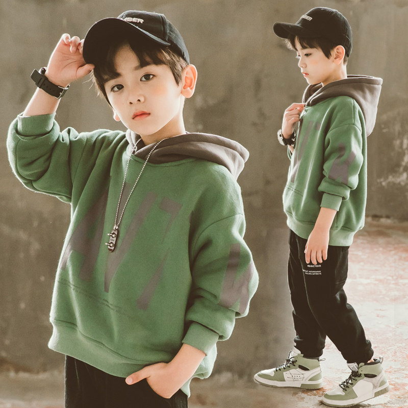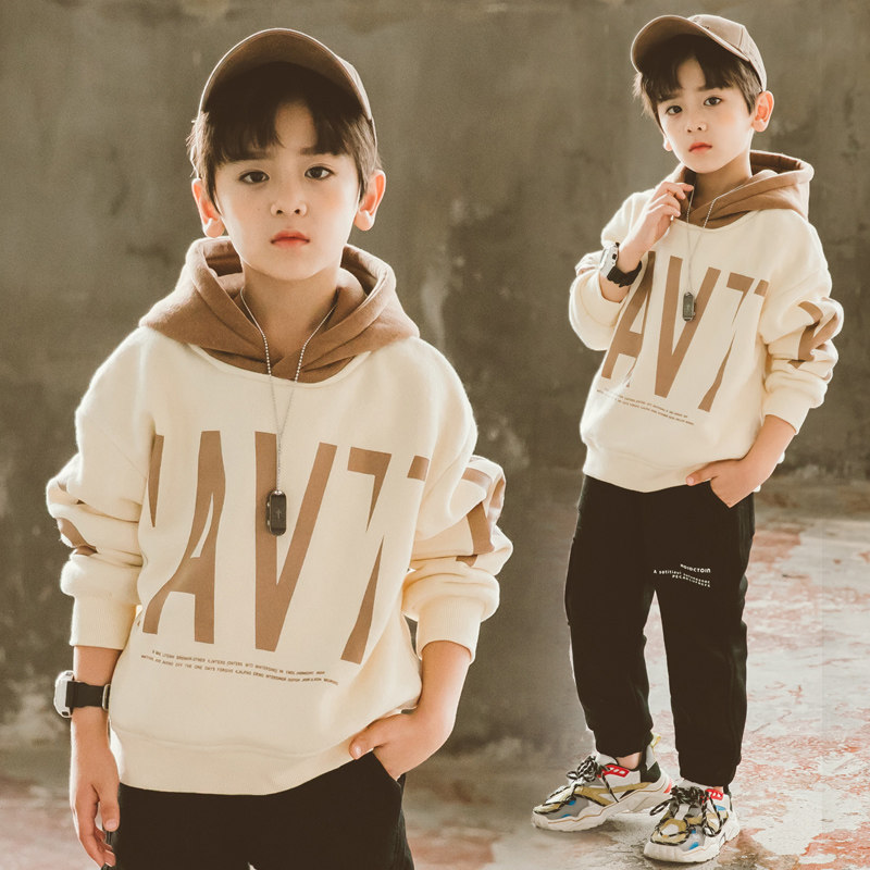 8男大童9冬季加绒卫衣10男孩新款潮牌炸街12儿童加厚宽松外套13岁