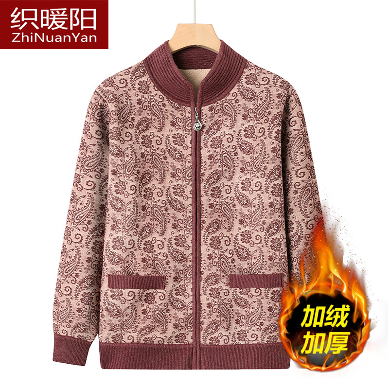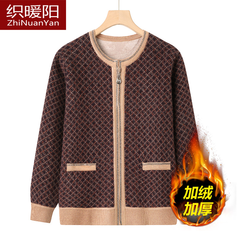 妈妈冬装加绒加厚外套中老年女装2025新款秋冬毛衣中年洋气质上衣