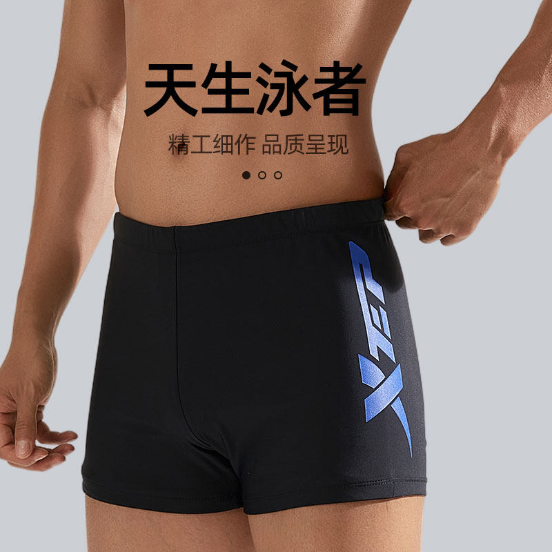 特步泳裤男款平角男士温泉游泳裤防尴尬泳镜泳帽三件套装男生泳衣