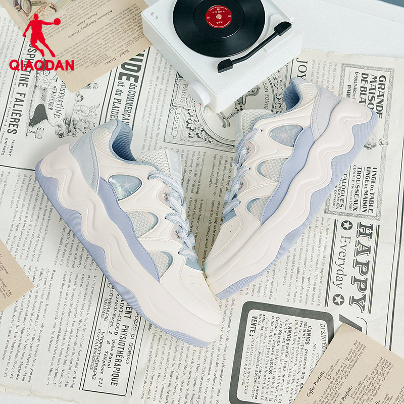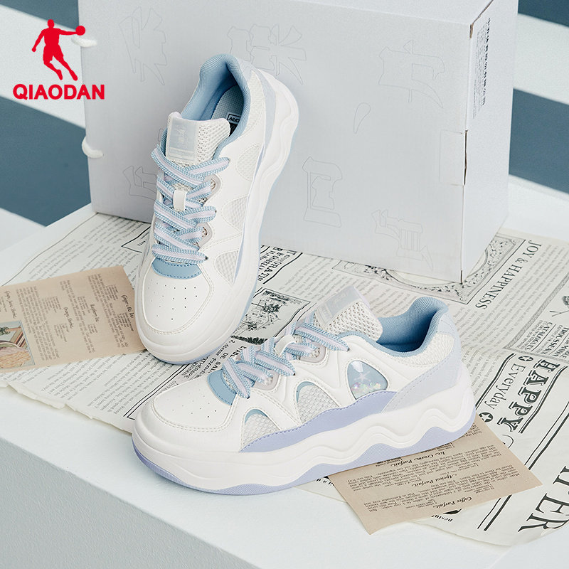 乔丹蓝色女板鞋2026年春季新品皮面女鞋潮流面包鞋学生增高鞋子