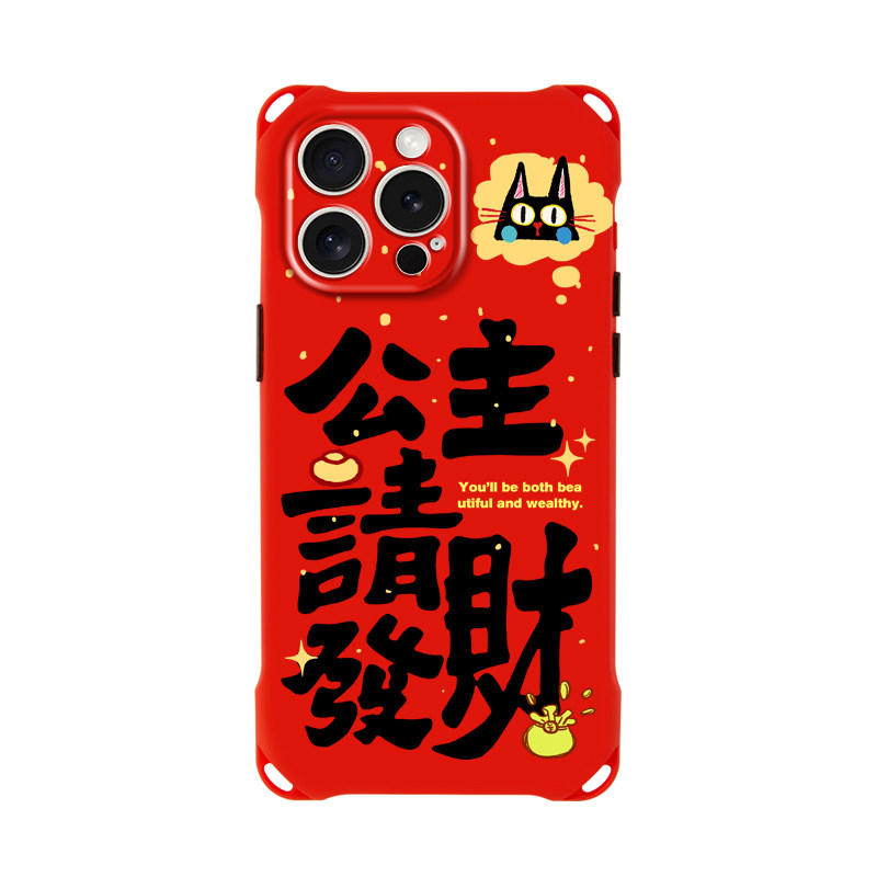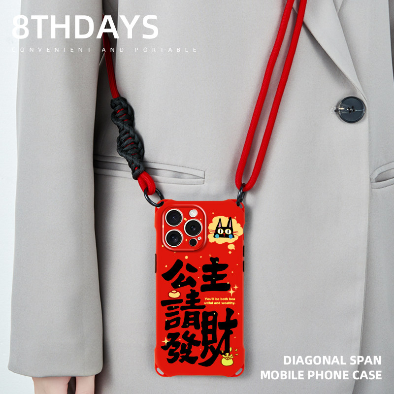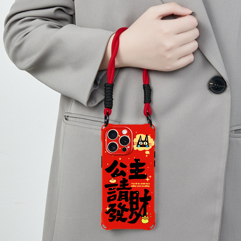 原创公主请发财手机壳适用苹果16挂绳斜挎14镜头全包13小众pura70软壳红色mate60创意小米15pro女款手提