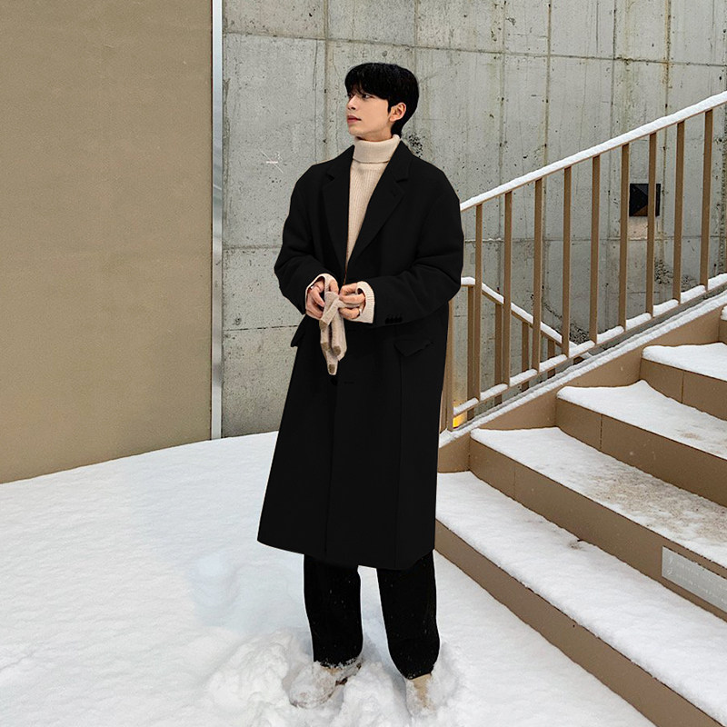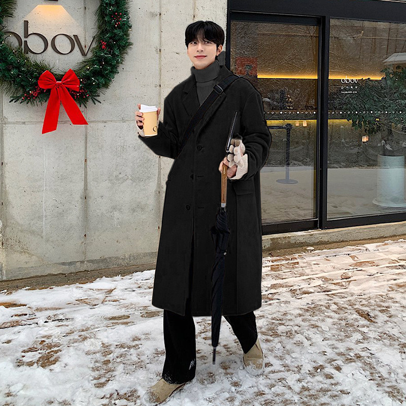 大衣男款冬季加厚中长款男生韩版风衣呢子外套韩系毛呢大衣男冬装