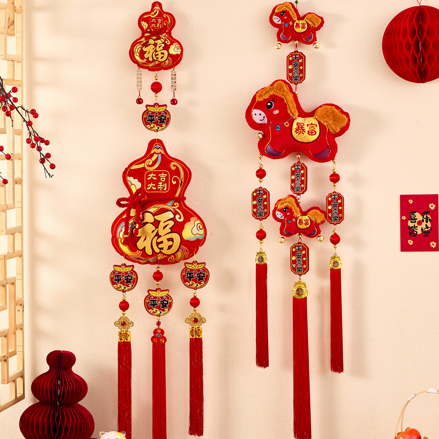 新年福字挂件客厅背景墙面大号挂饰马年过年平安装饰贺年氛围布置