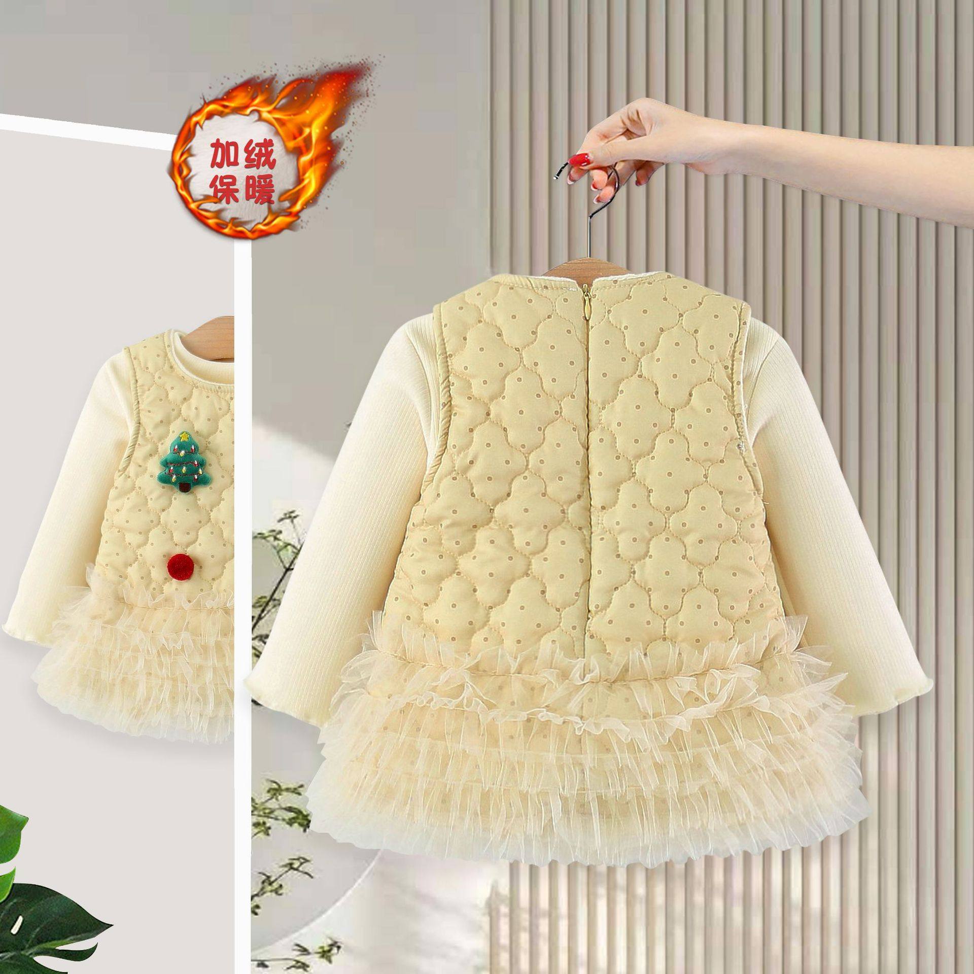 三两一周岁女童时尚套装洋气时髦裙子冬季加绒女宝宝超好看连衣裙