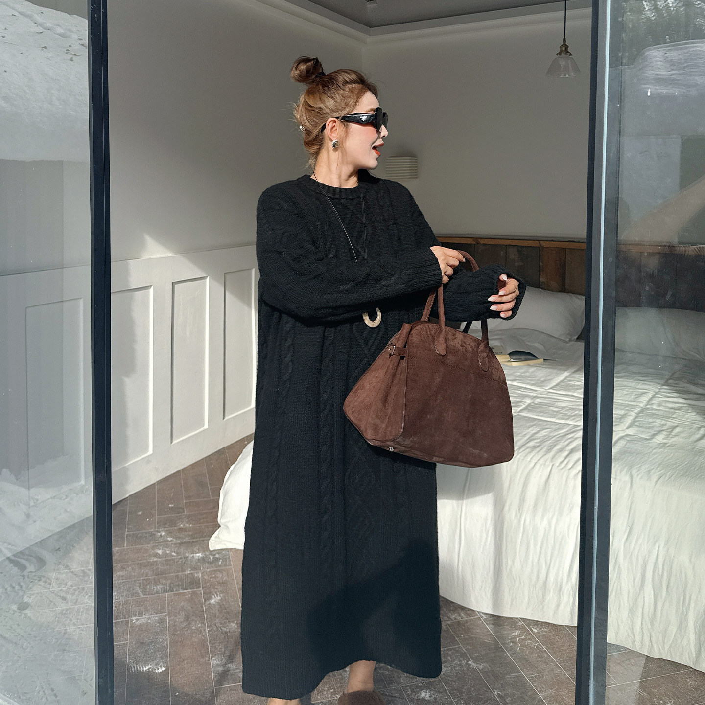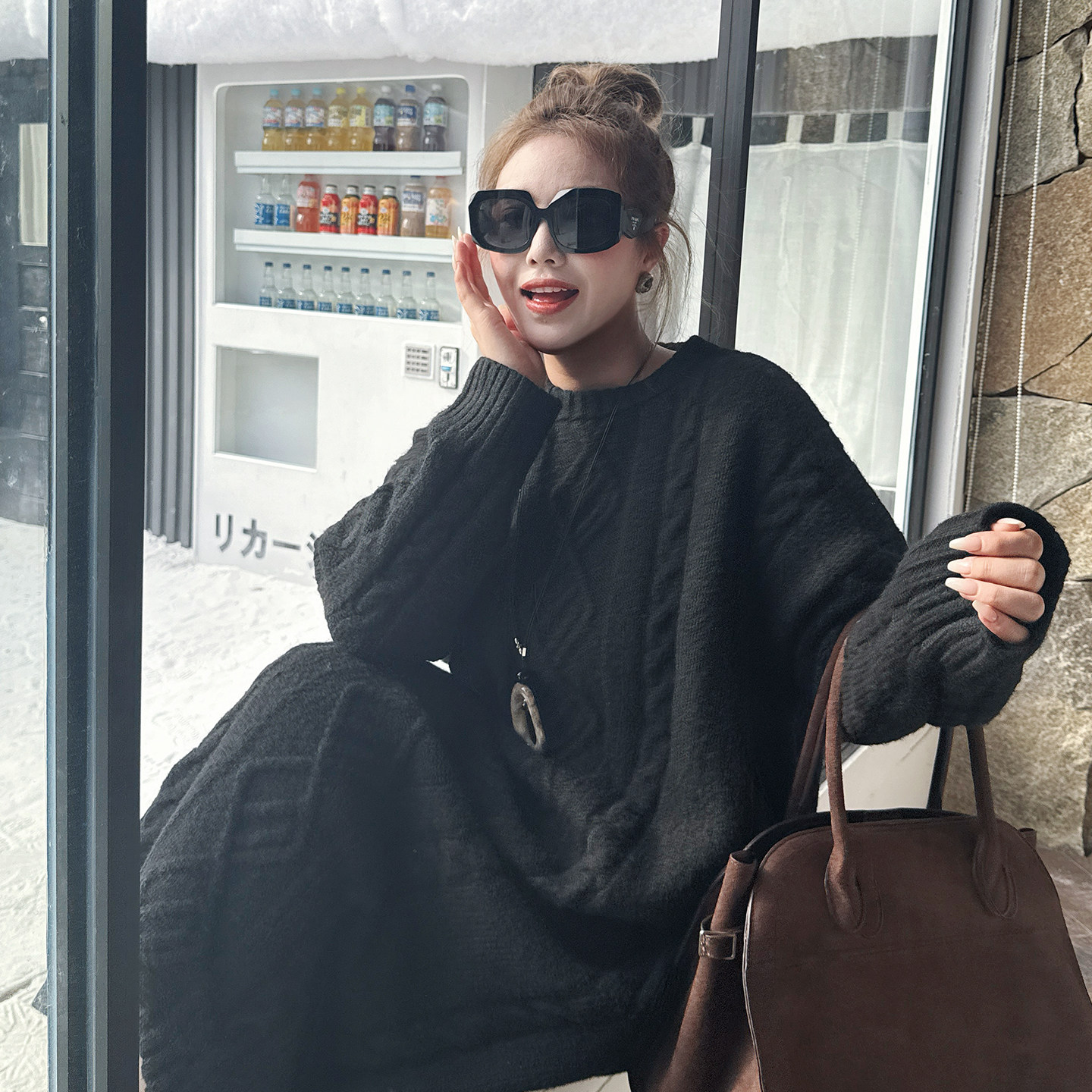 【年末7折】媛子家大码冬季宽松百搭麻花纹长款毛衣裙胖mm连衣裙