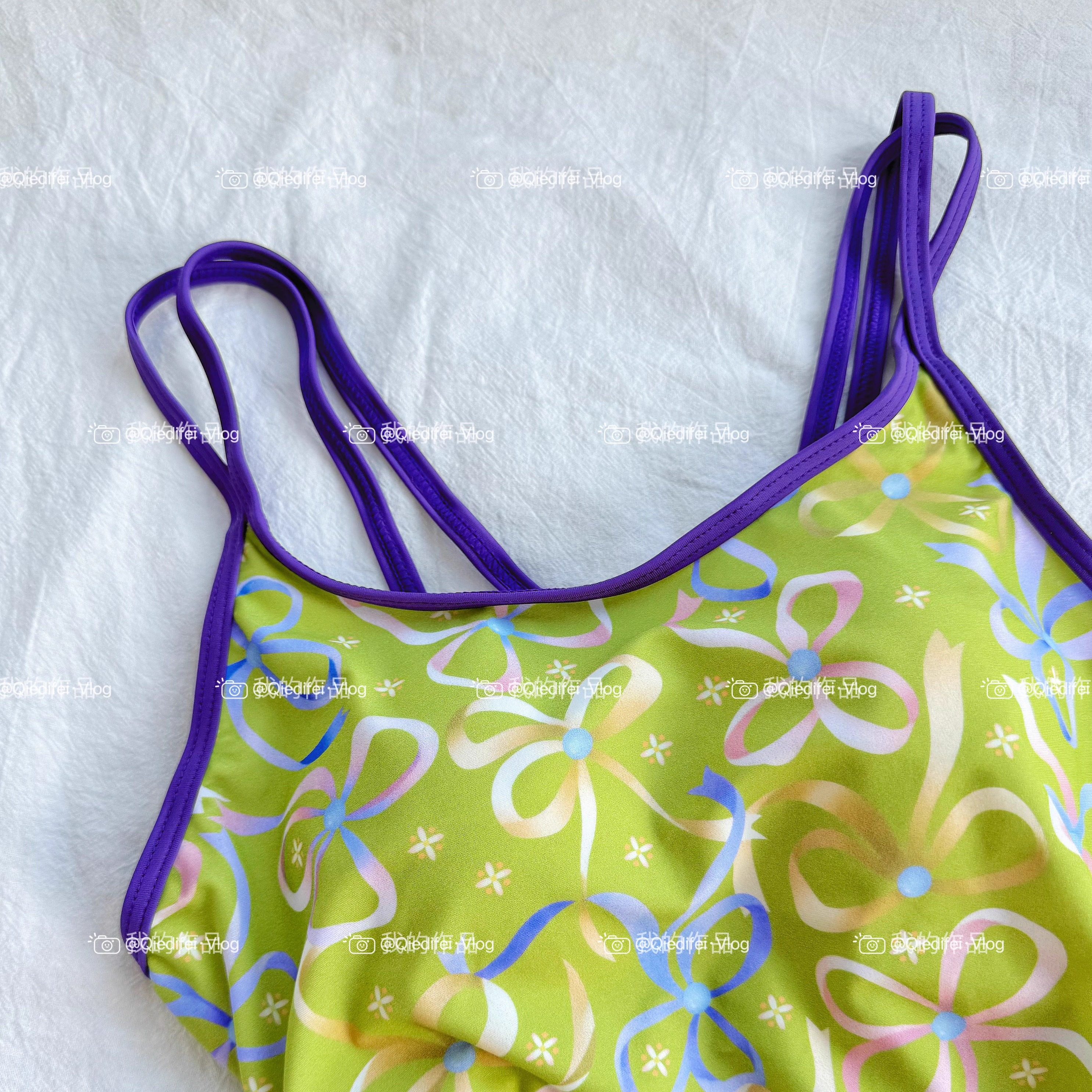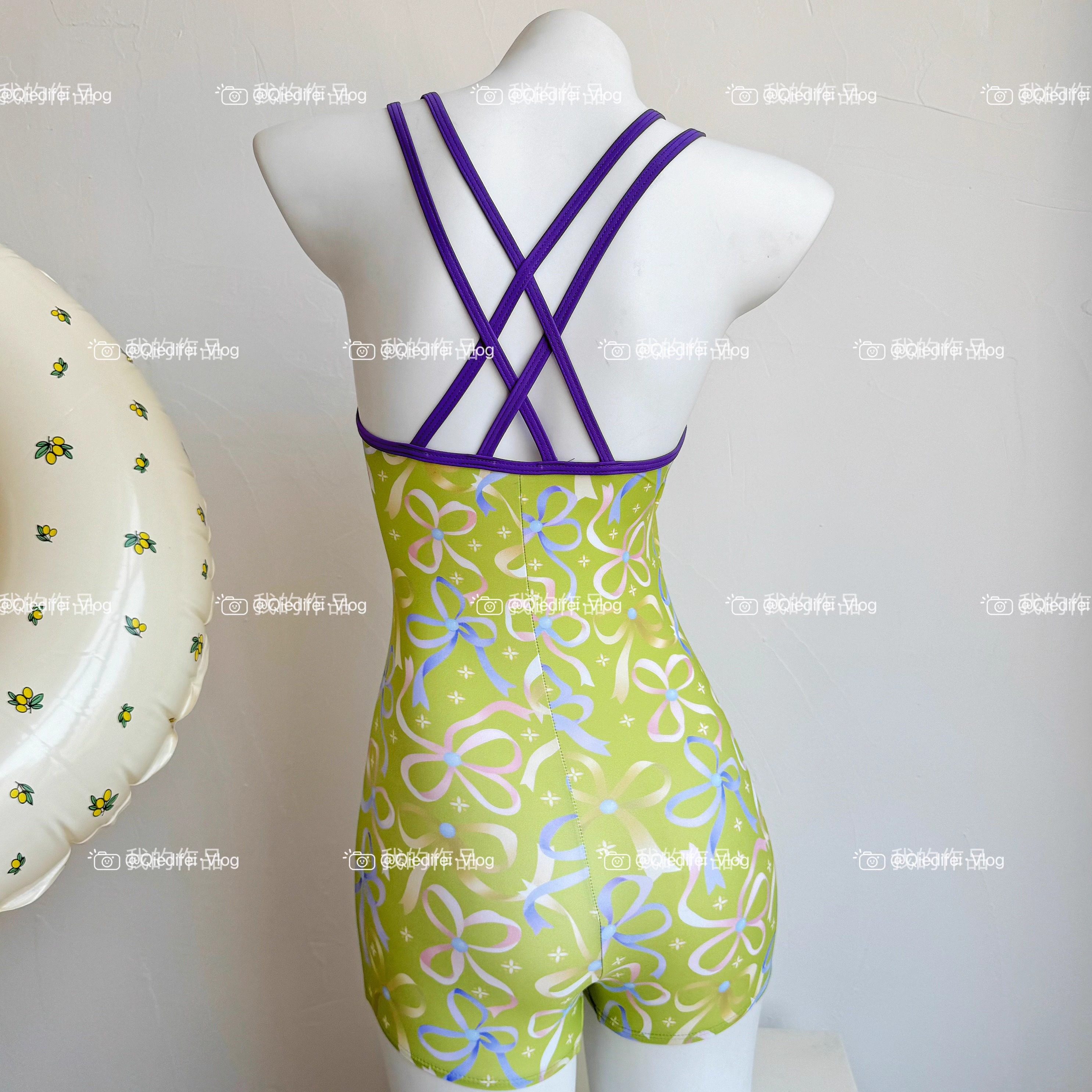 《奶绿蝴蝶结》新款小清新泳衣女连体平角角竞速游泳馆专业泳衣