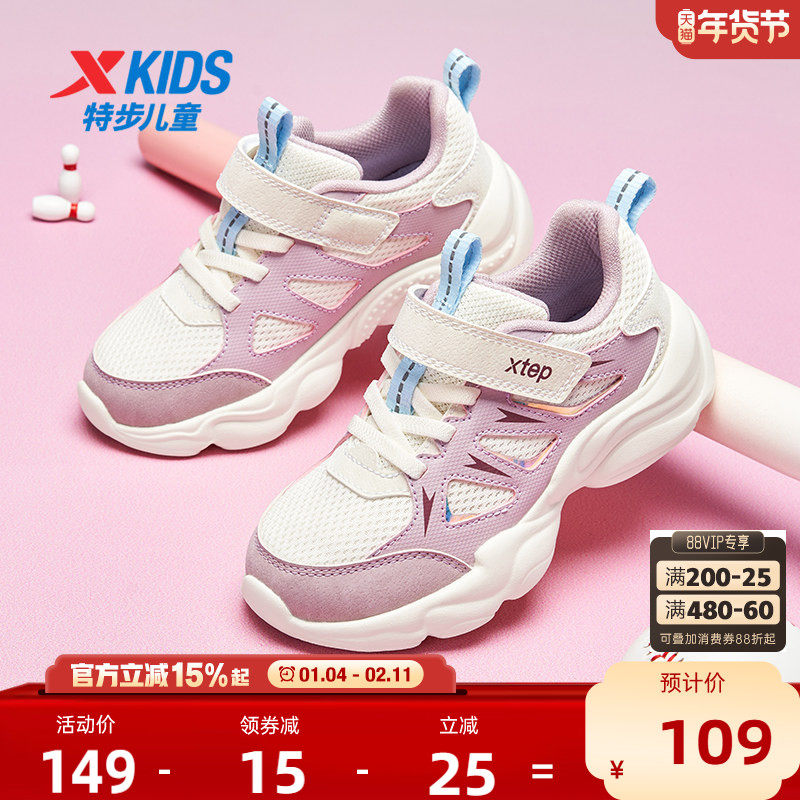 特步女童鞋2026新款秋冬女孩宝宝儿童鞋网面魔术贴运动鞋休闲鞋子