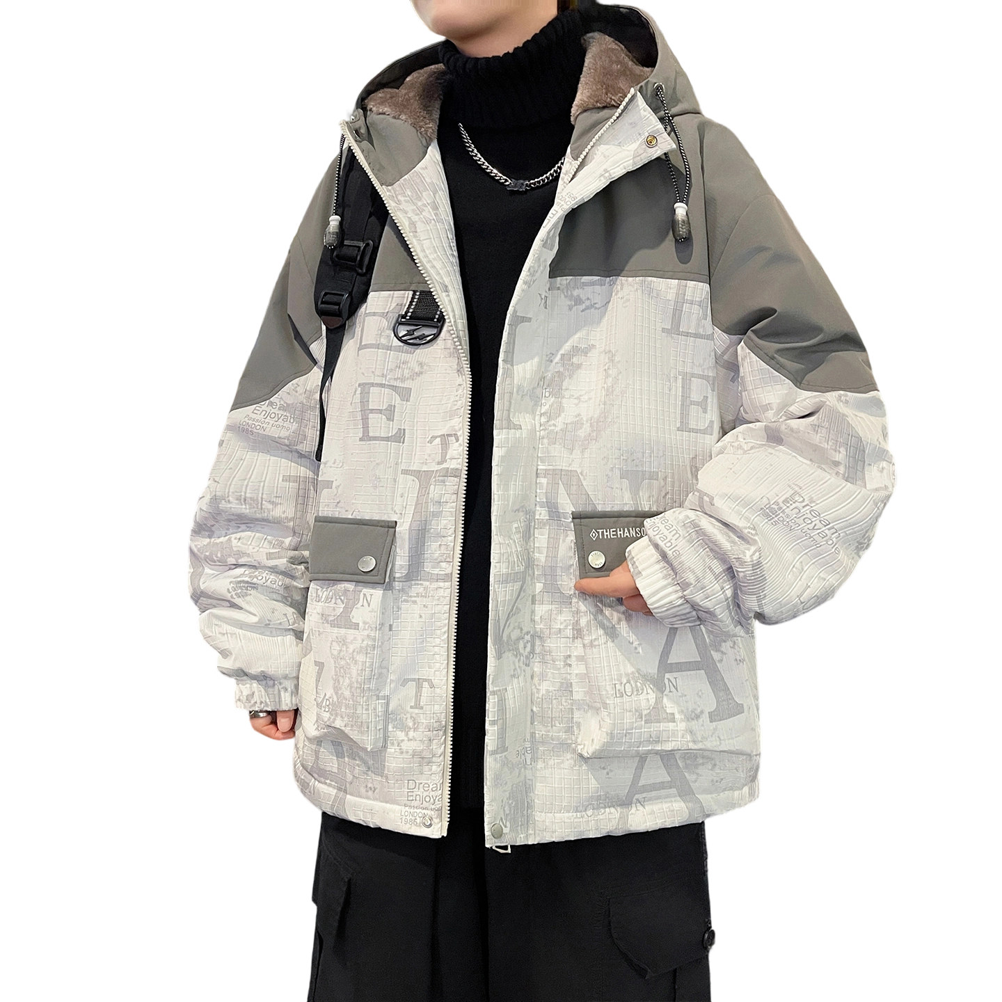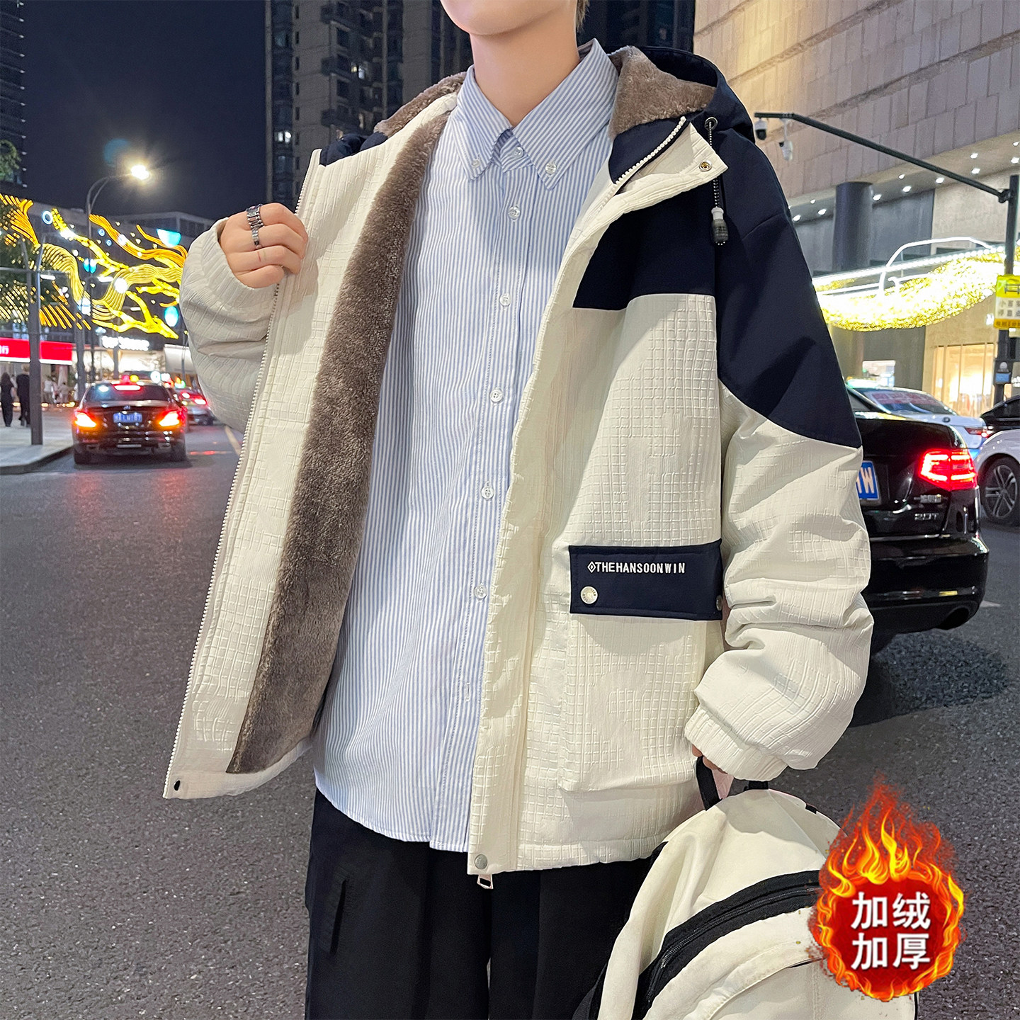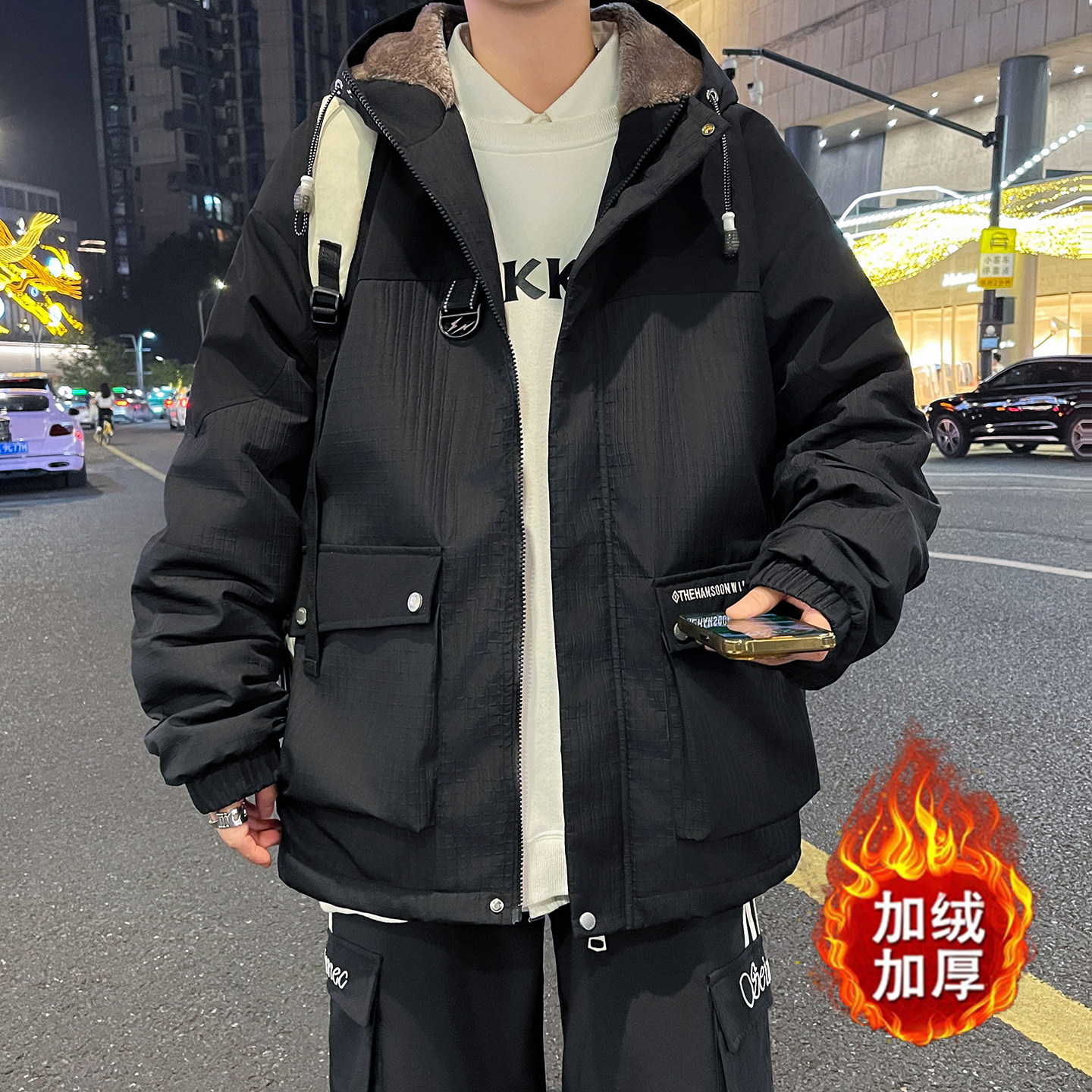 秋冬款加绒外套男孩初中高中学生加厚休闲夹克青少年大童冬装棉服