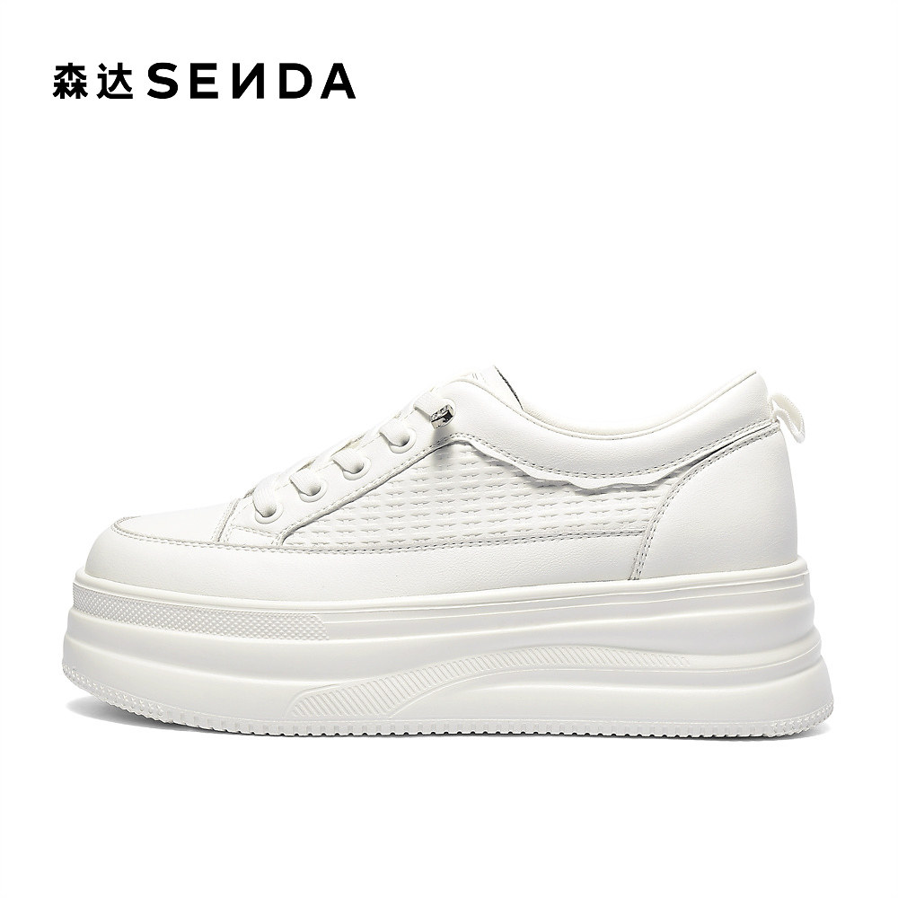 森达小白鞋女款百搭商场同款超火增高厚底白色板鞋配裙子XSD01