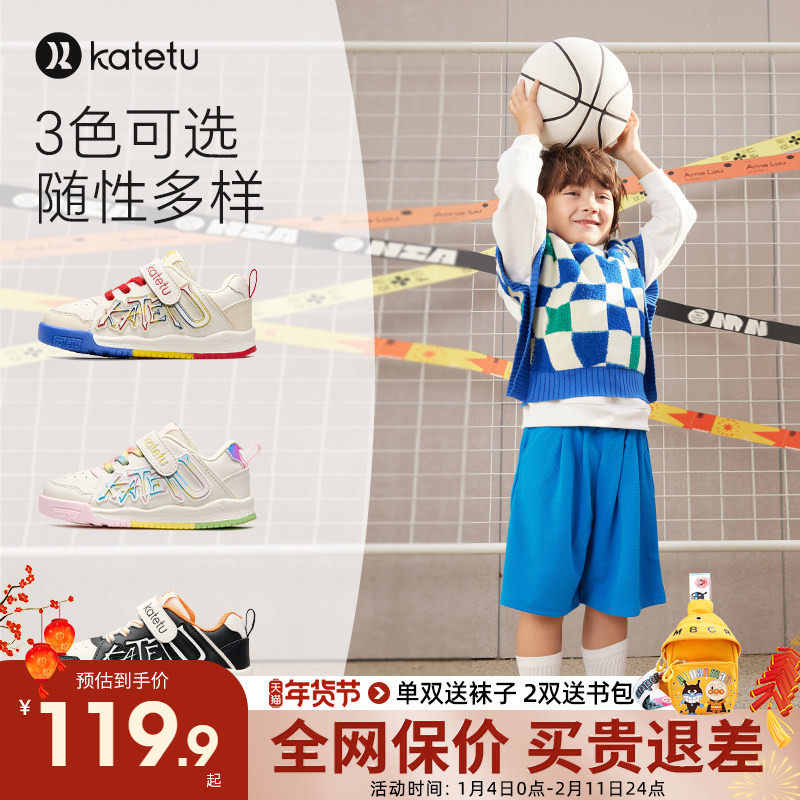 卡特兔防滑小白鞋2026新款春季男童软底板鞋女童软底休闲鞋宝宝鞋