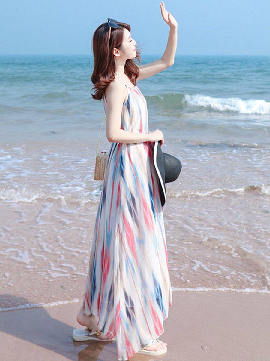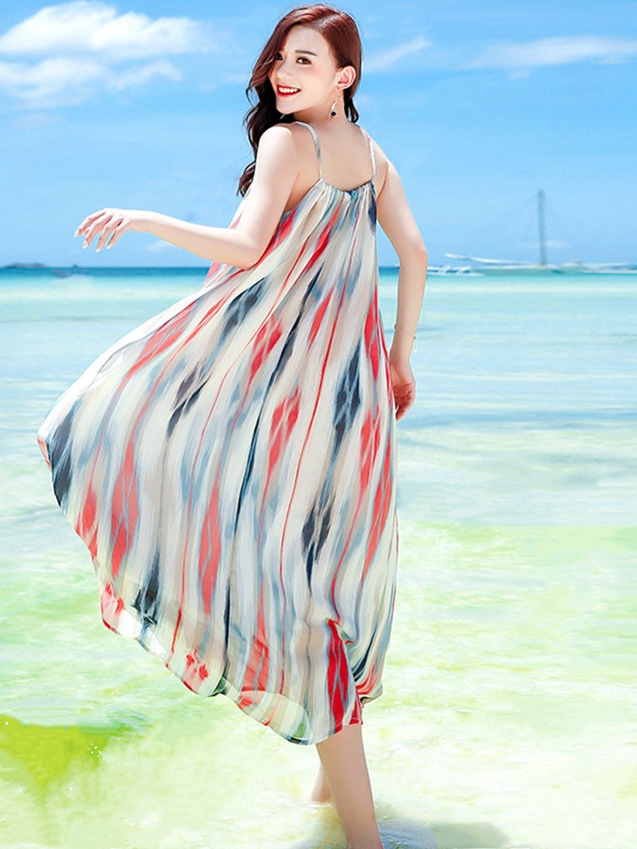 胖女孩吊带裙大码胖mm遮肚藏肉巨显瘦裙子女夏天新款连衣裙沙滩裙
