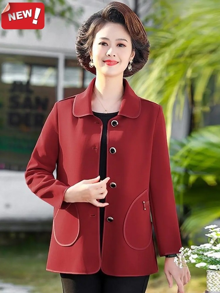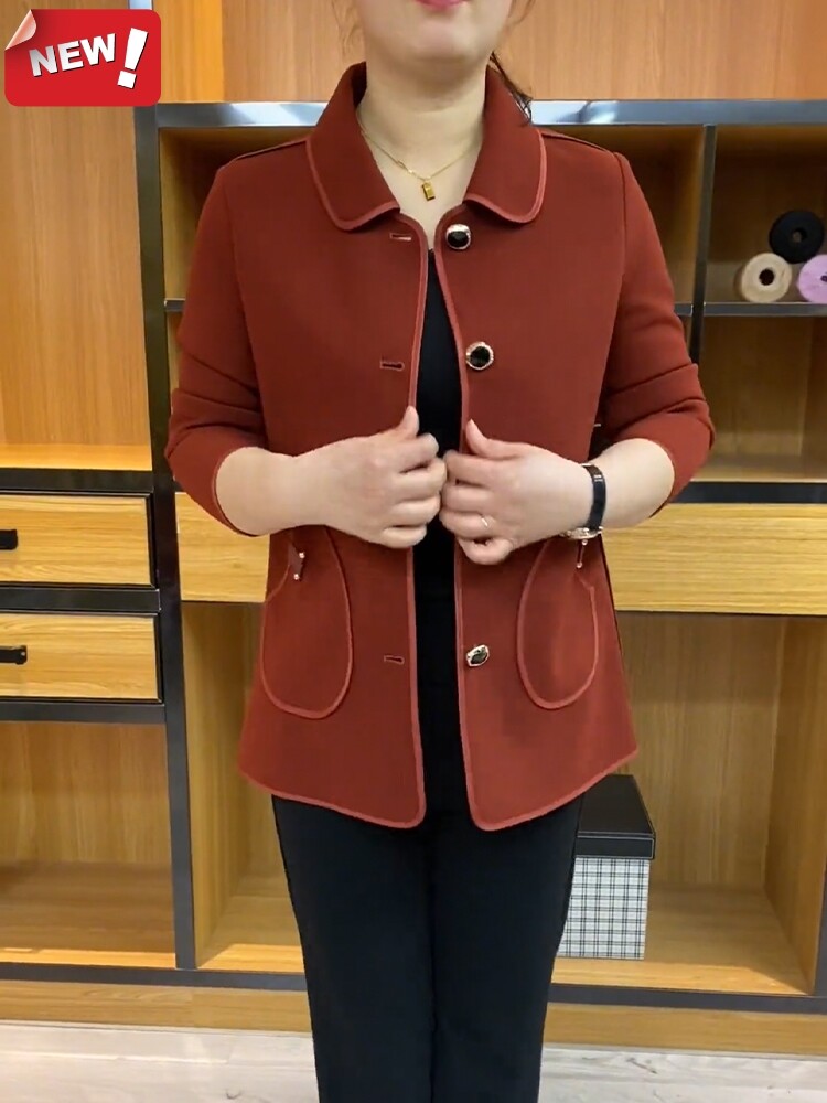 女式夹克外套洋气中老年女装翻领薄款40-50岁妈妈装纯色春秋风衣