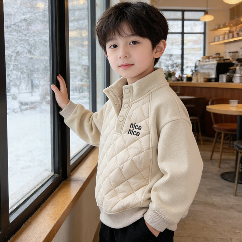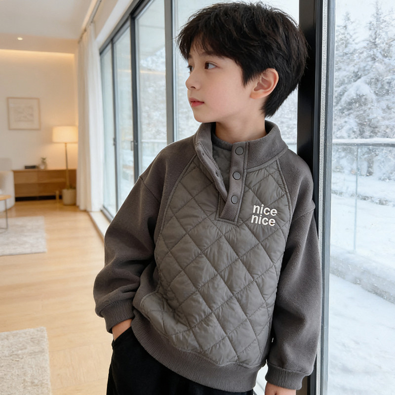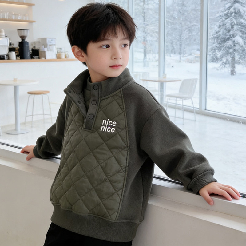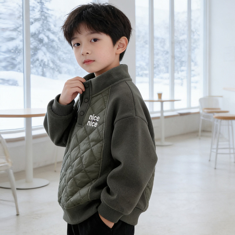 男童加绒加厚卫衣冬装中大儿童夹棉防风外套男孩潮一体绒保暖上衣