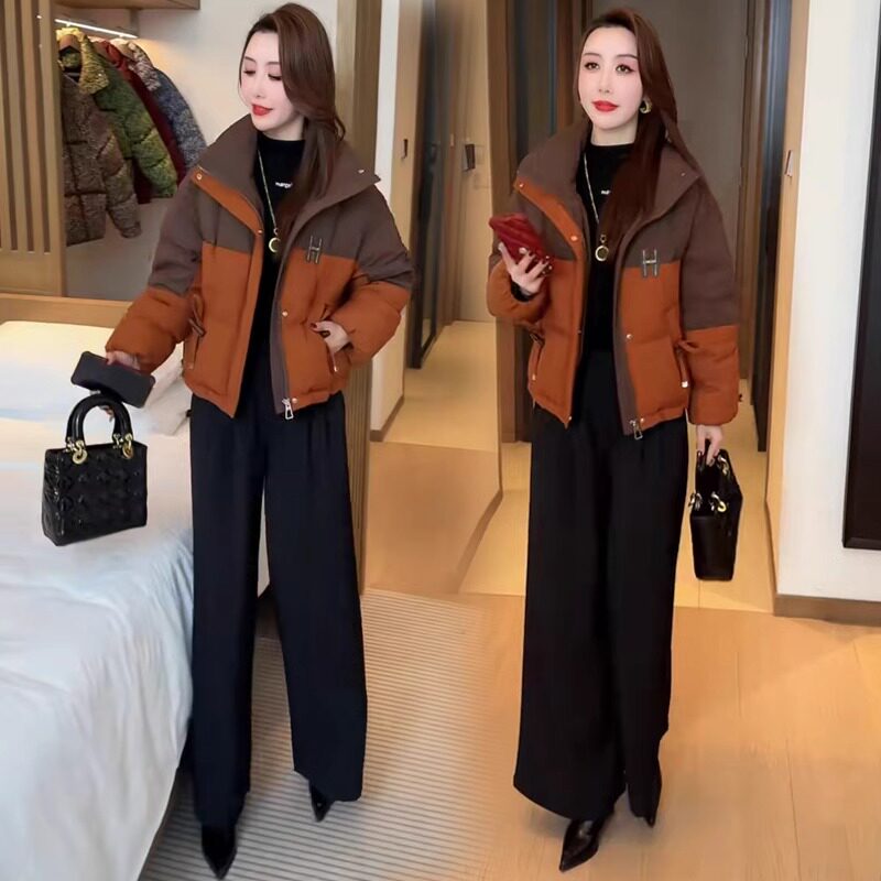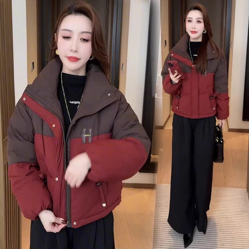撞色棉服女冬季2026年新款外套棉衣今年流行爆款小个子立领面包服
