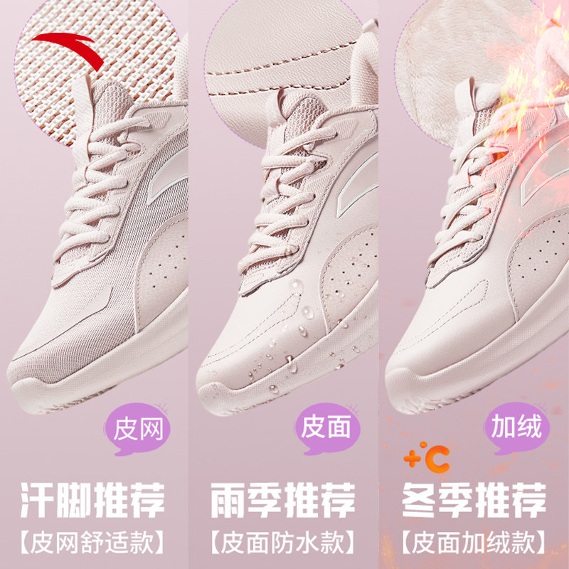 安踏鞋子女鞋冬季新款皮面防泼水休闲鞋正品轻便妈妈减震运动鞋女