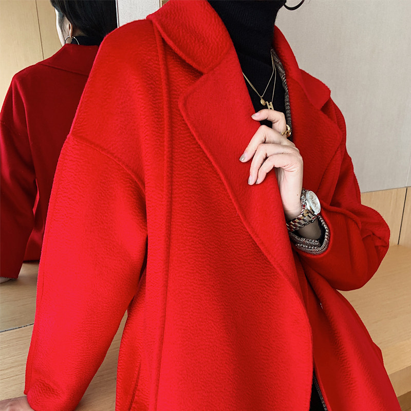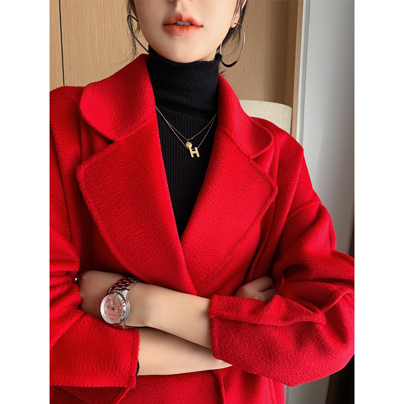 结婚红色大衣2023秋冬新款中长款小个子100%双面羊毛呢零羊绒外套
