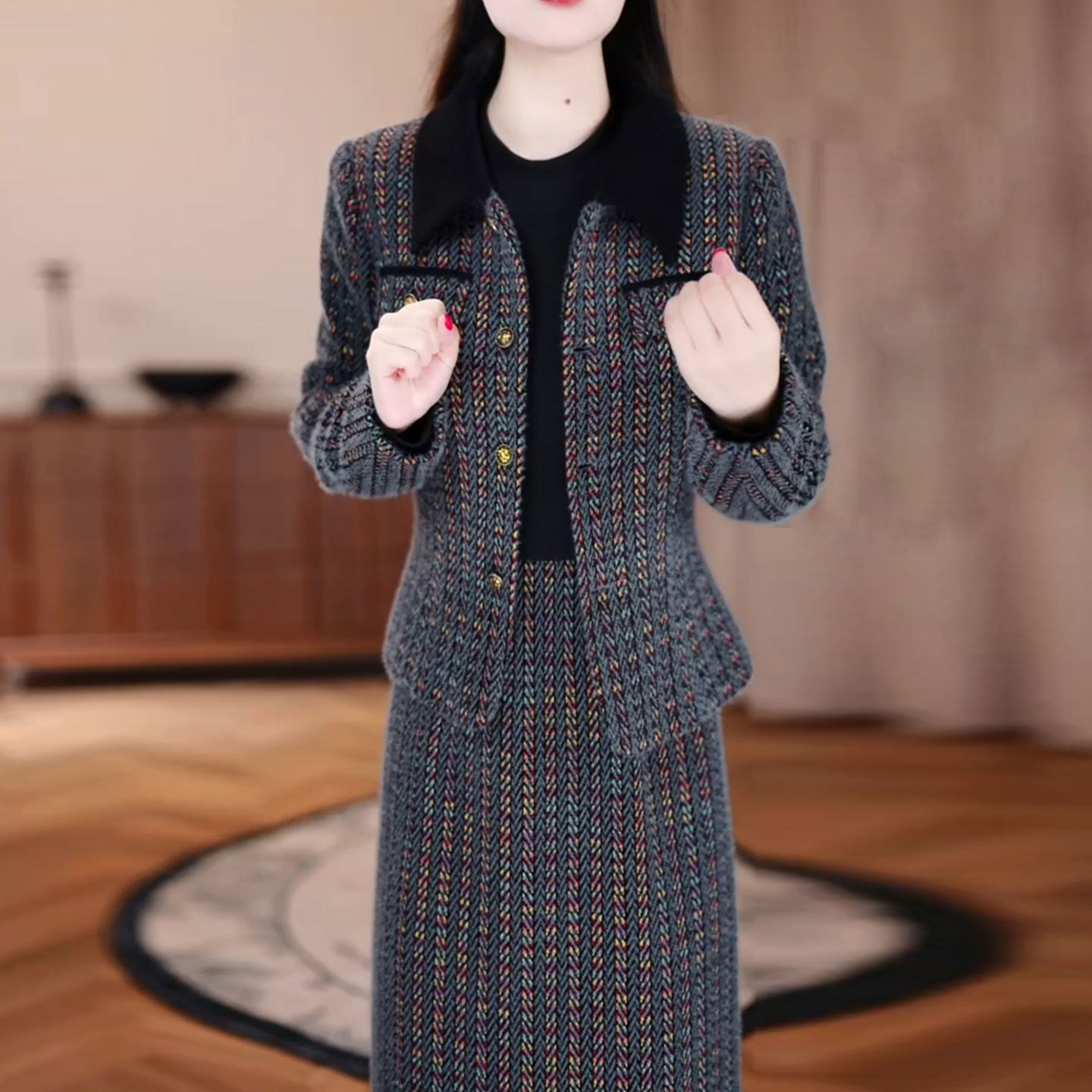 小香风套装连衣裙2025新款女秋冬十三行爆款减龄轻奢高级感两件套