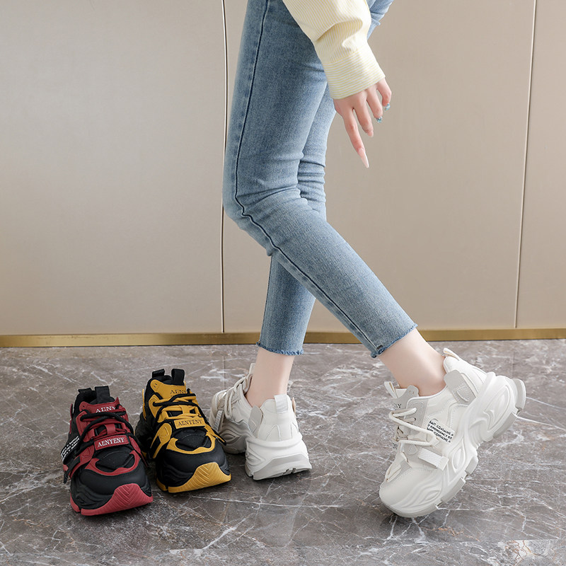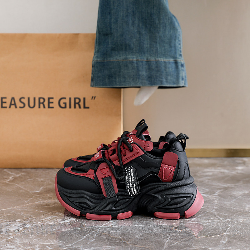 松糕厚底老爹鞋女2026春季爆款红色女鞋小个子增高休闲运动鞋34码