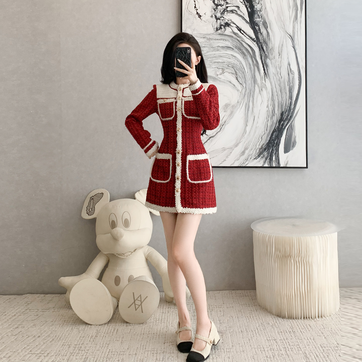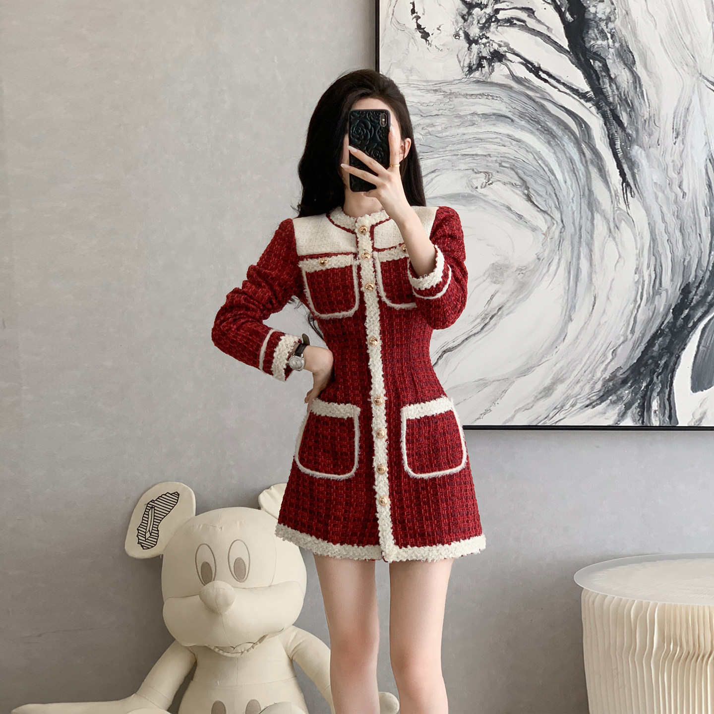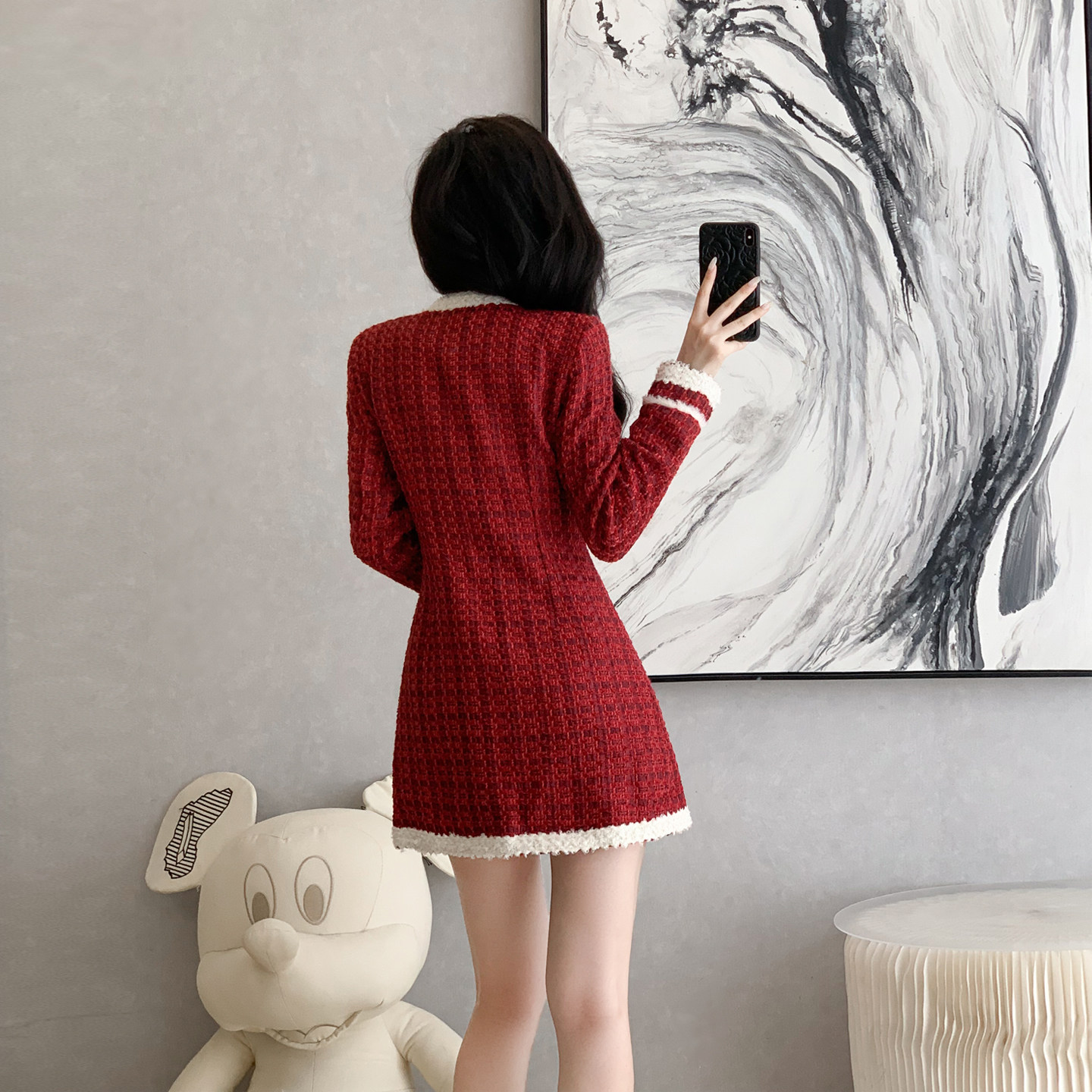高级感小香风气质时尚连衣裙女秋冬季新年战袍收腰显瘦短裙小个子