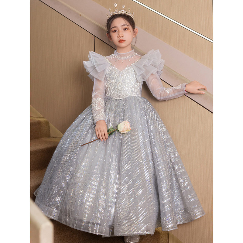 奢华生日礼服裙轻奢小众高端女童连衣裙公主裙钢琴演出服主持人灰