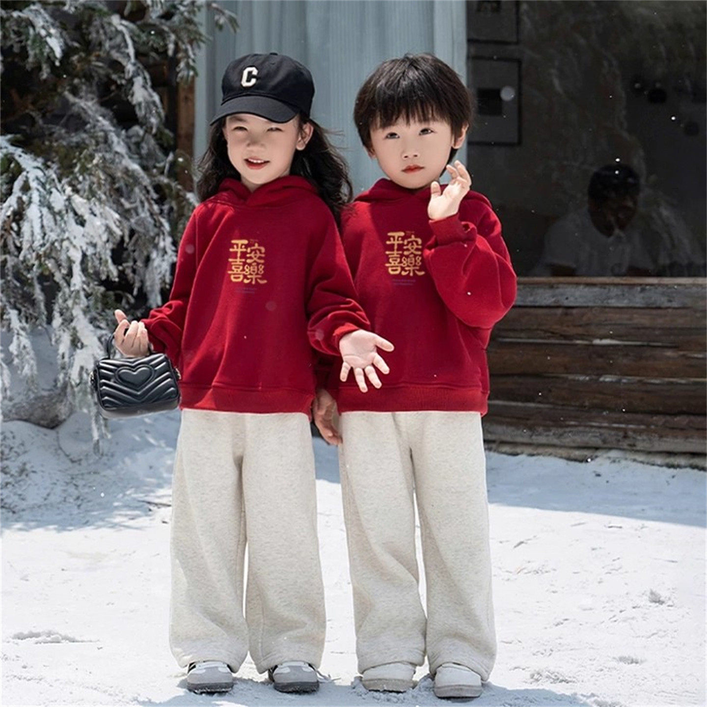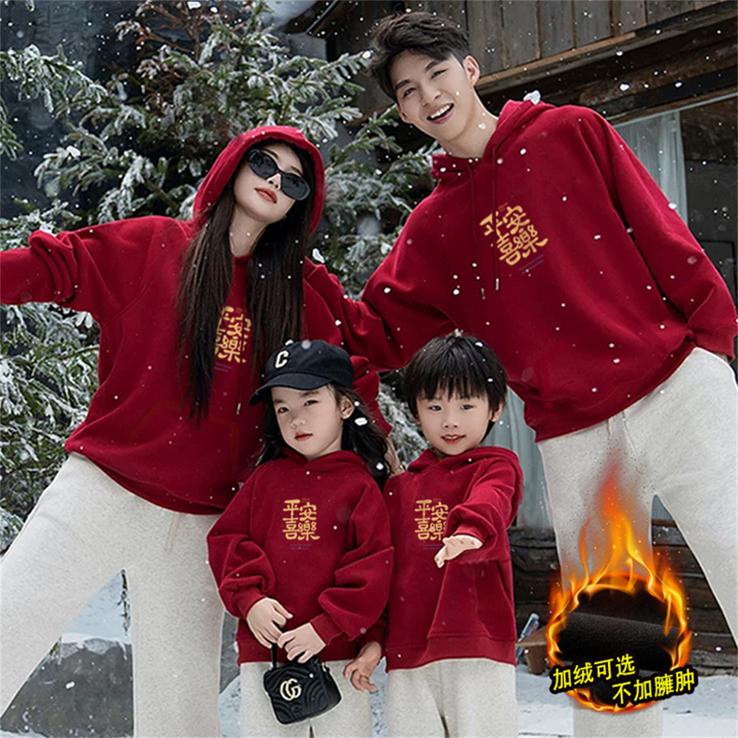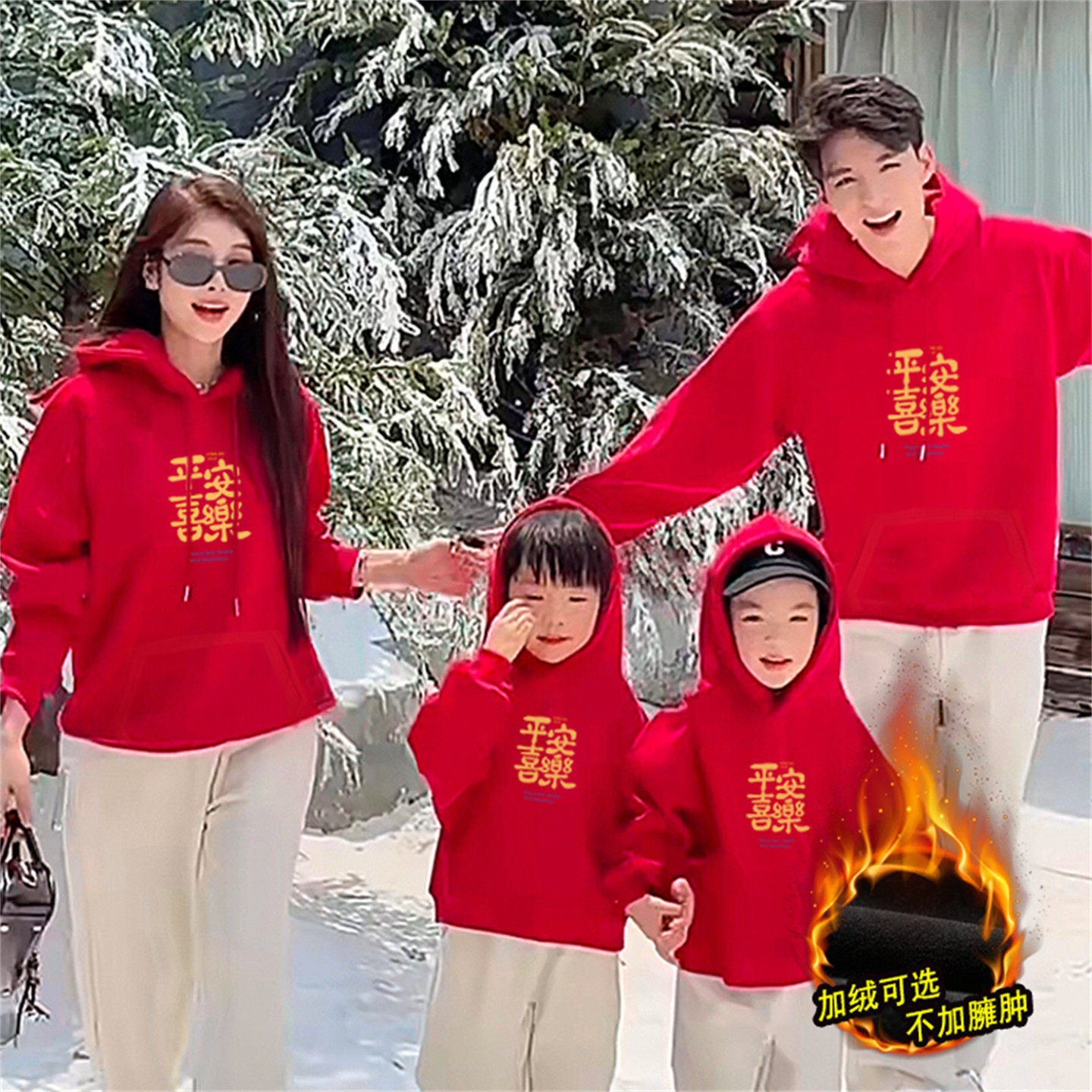高端红色平安喜乐连帽卫衣男士2026新款冬季本命年加绒上衣男女款