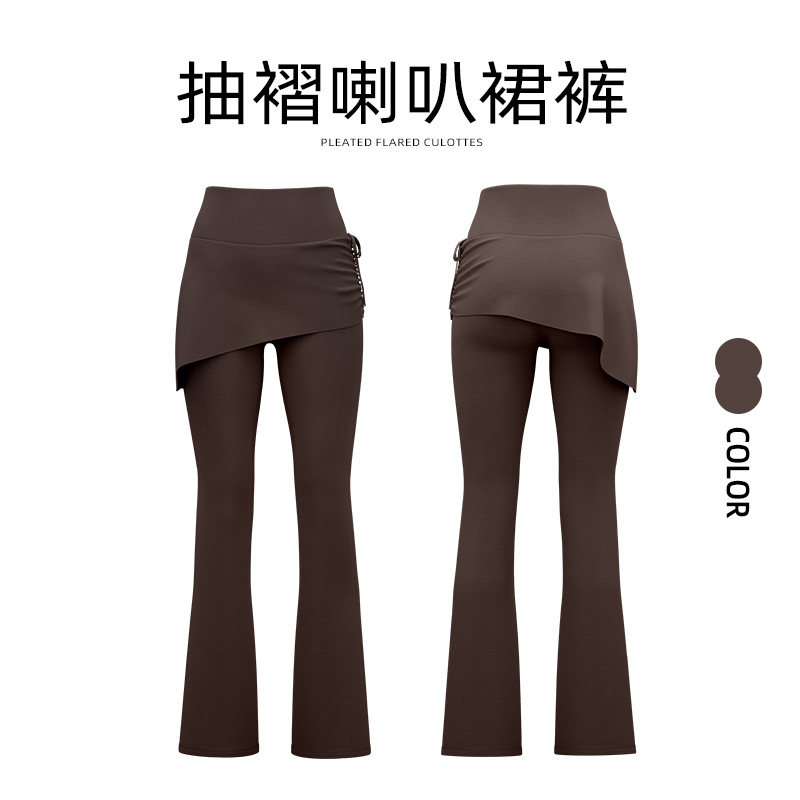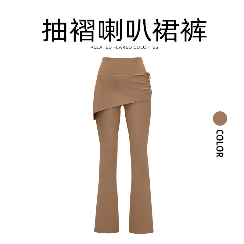 瑜伽裤女健身假两件裤裙高腰提臀防走光微喇叭普拉提训练运动裤秋