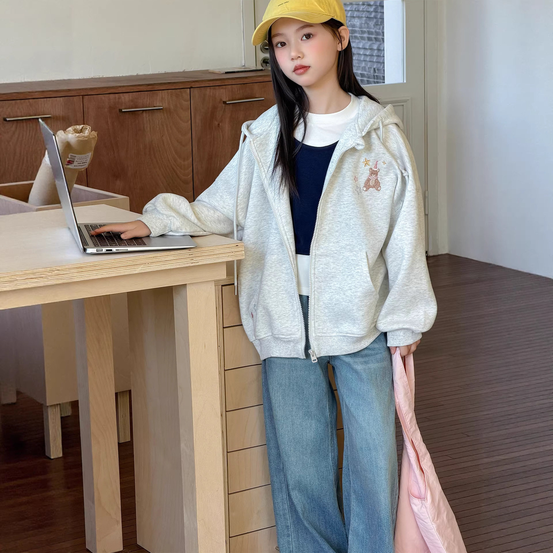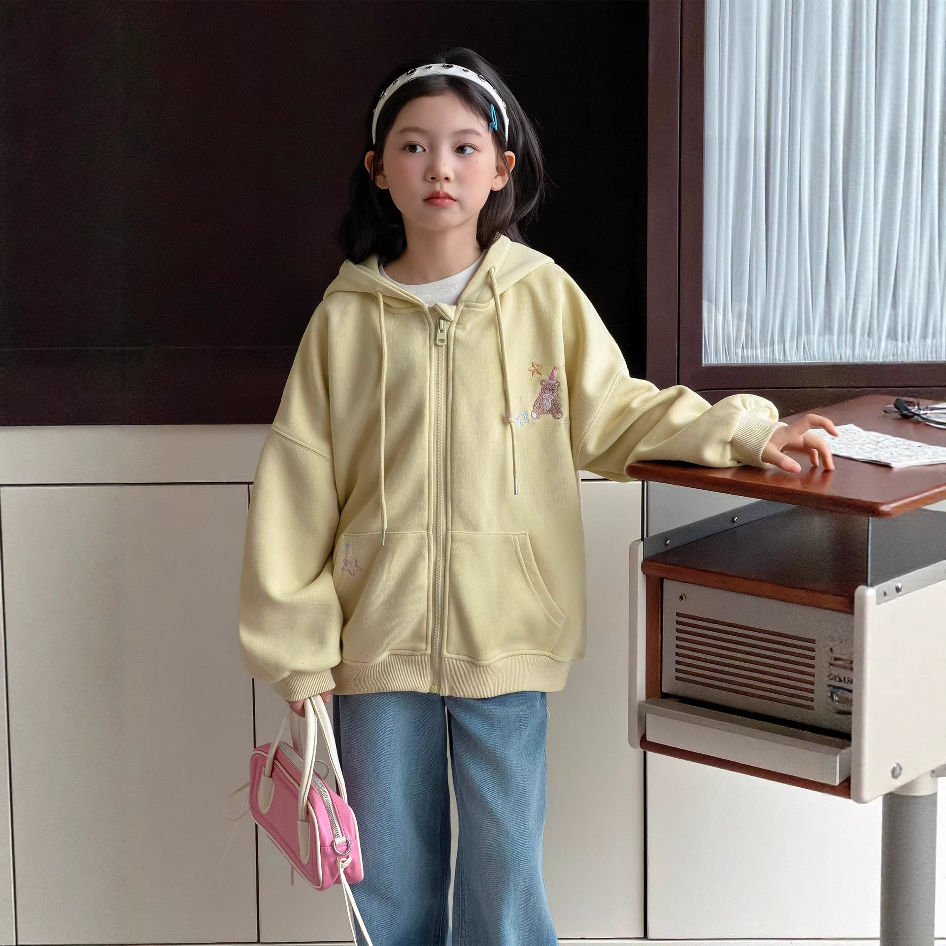 女童外套春装2026新款女大童洋气时髦连帽卫衣宽松休闲拉链衫开衫