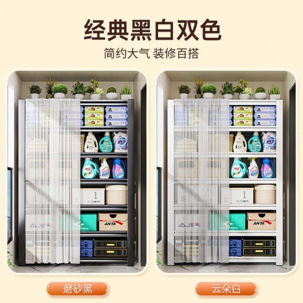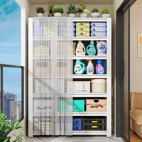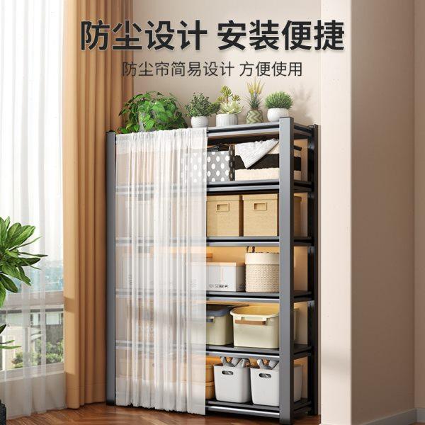 阳台置物架防尘带遮挡帘货架家用落地多层铁艺架子杂物钢制收纳架