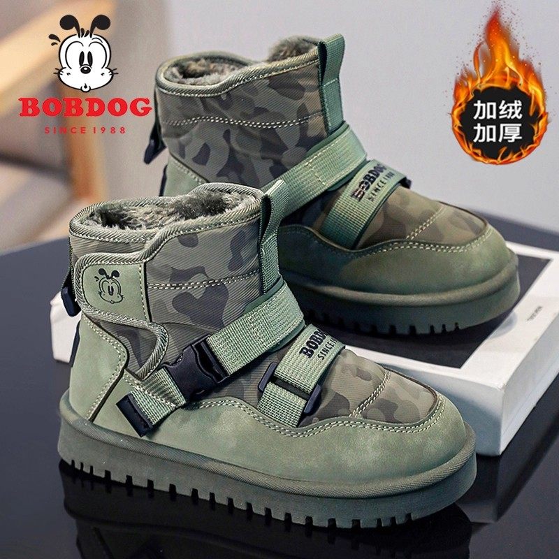 巴布豆男童雪地靴冬季新款防水防滑女童棉靴保暖加绒加厚儿童棉鞋