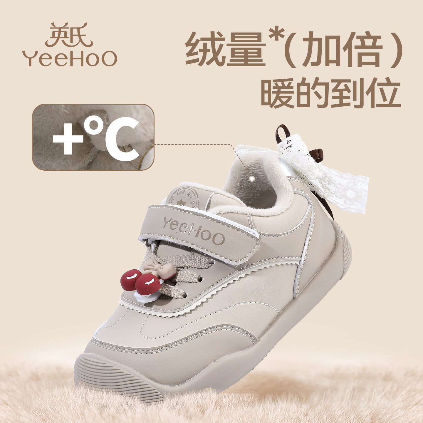 英氏童鞋女童加绒运动鞋冬季新款宝宝二棉鞋宝宝蝴蝶结儿童休闲鞋