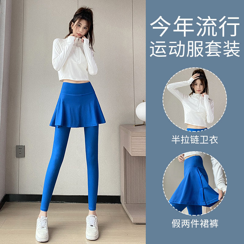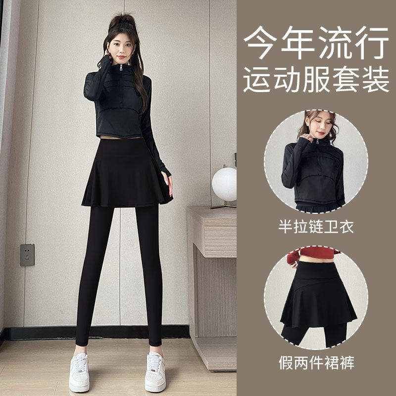 跑步女运动套装专业健身卫衣打羽毛球两件套裙裤瑜伽普拉提训练服