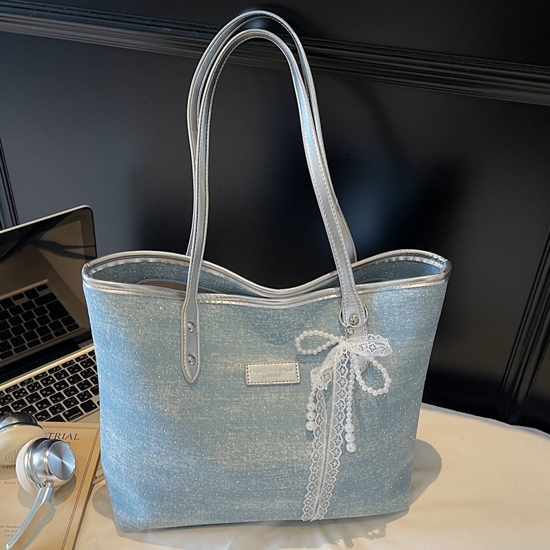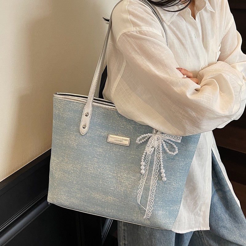 高级感黑色大容量上班通勤包托特包女款2025新款潮百搭单肩包大包