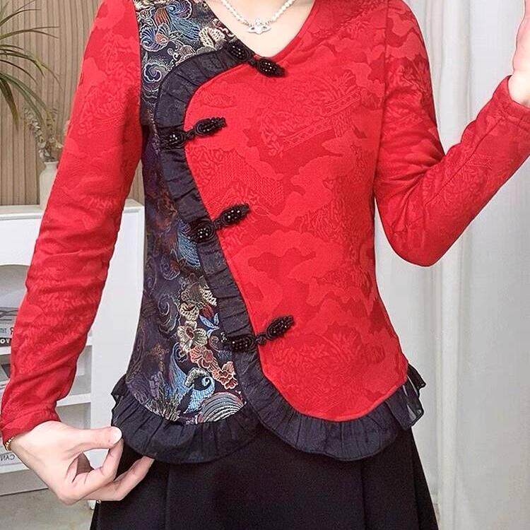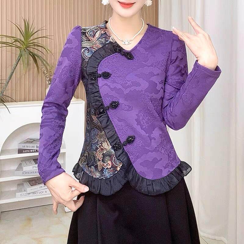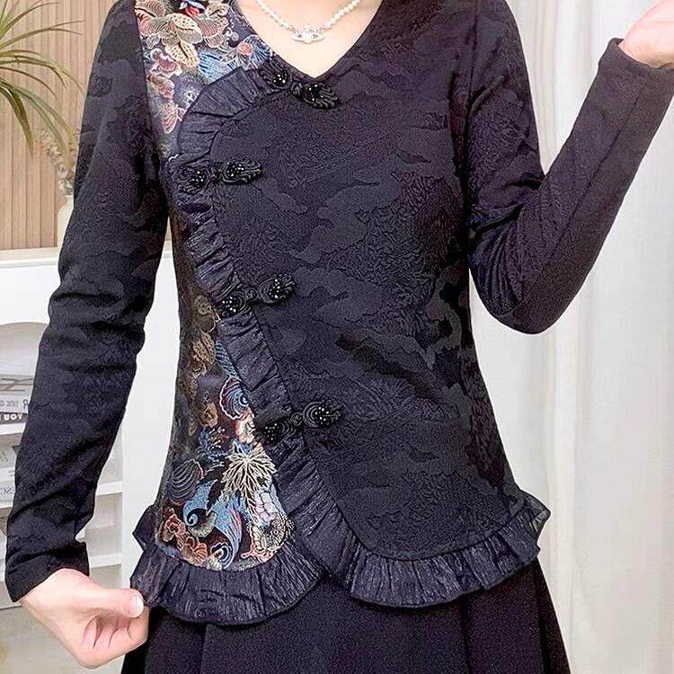 新中式国风上衣女2026新款春秋洋气小衫妈妈高端气质衬衣花边盘扣