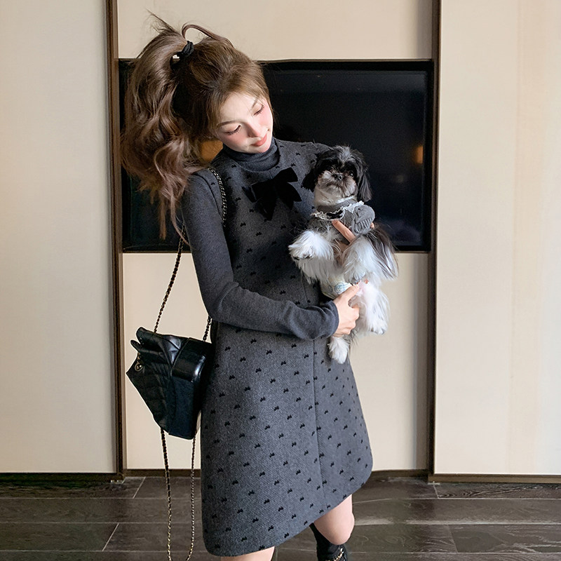 毛呢无袖连衣裙配毛衣两件套春装女2026年新款轻奢高级感连衣裙