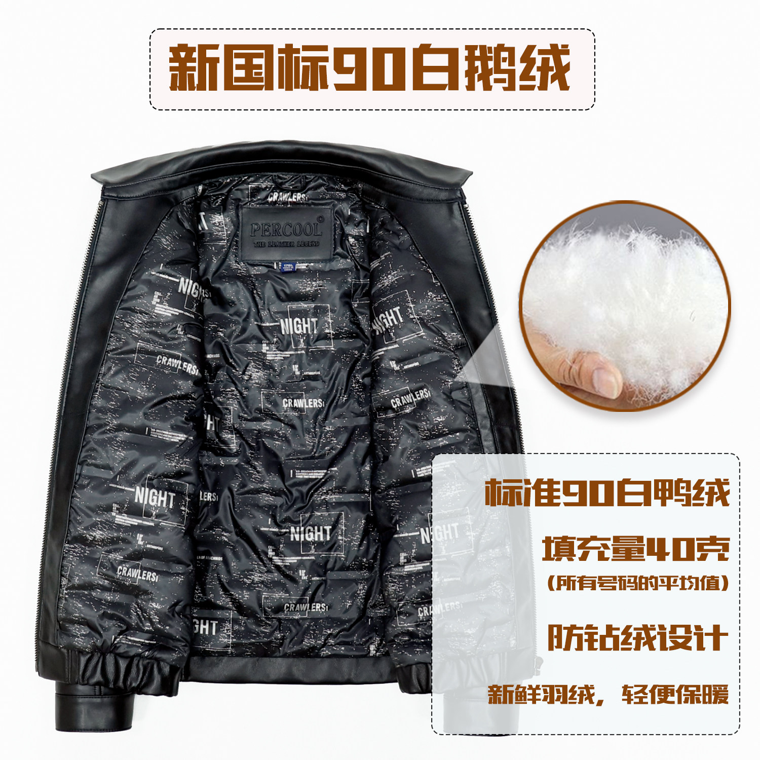 311线报网描述:100%头层山羊皮,新国标90白鹅绒填充