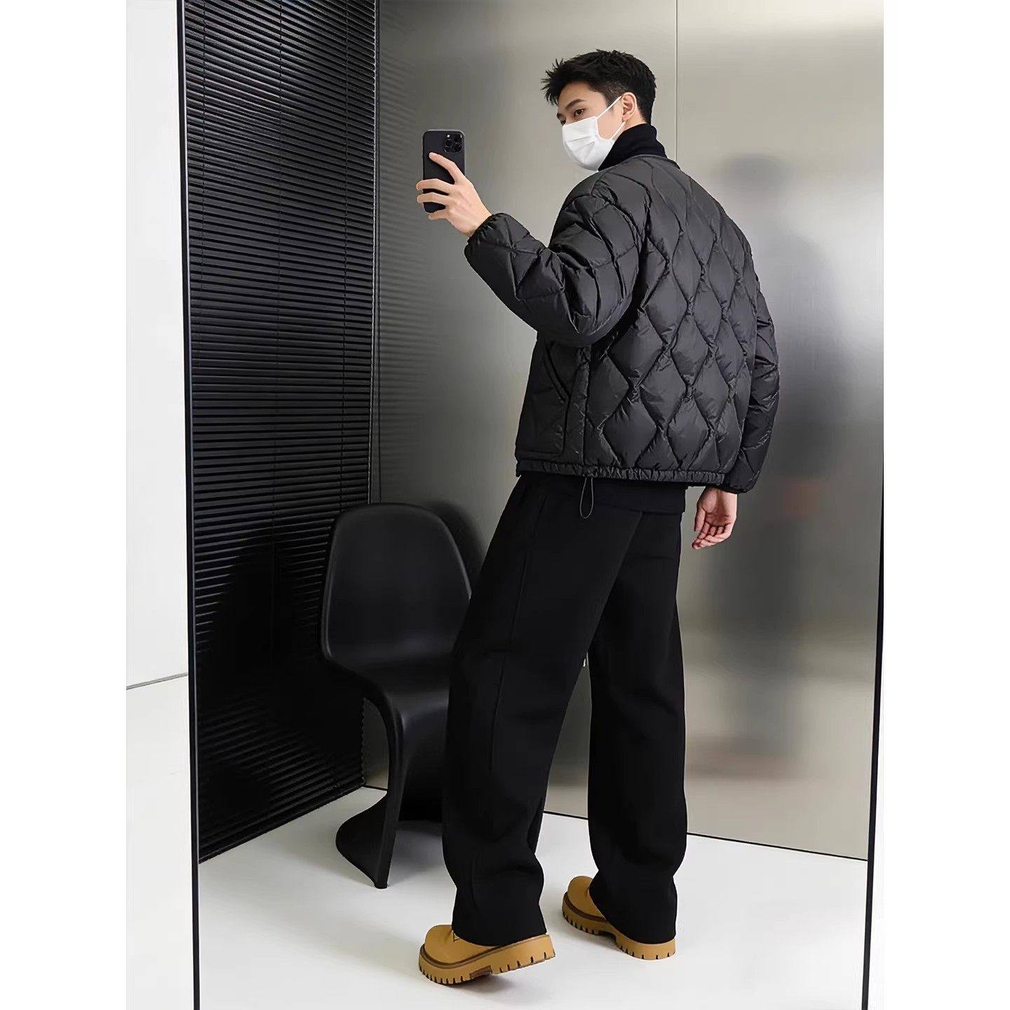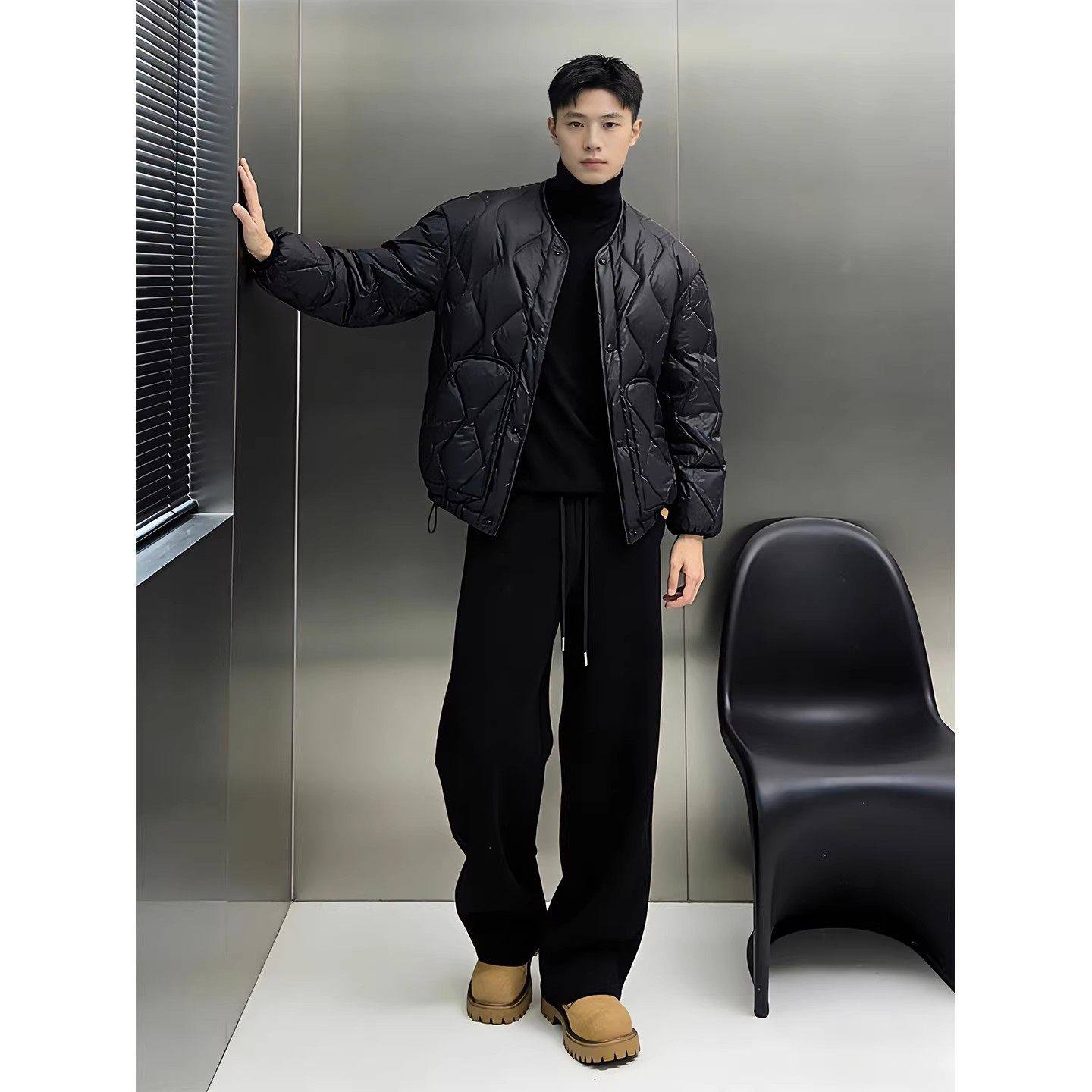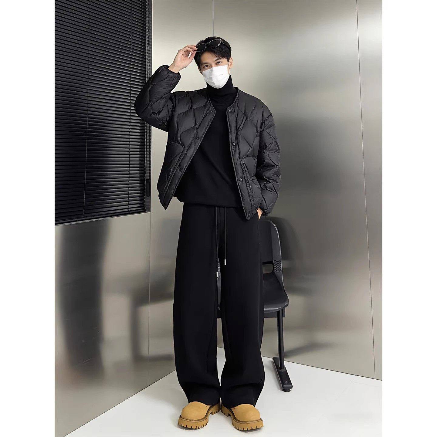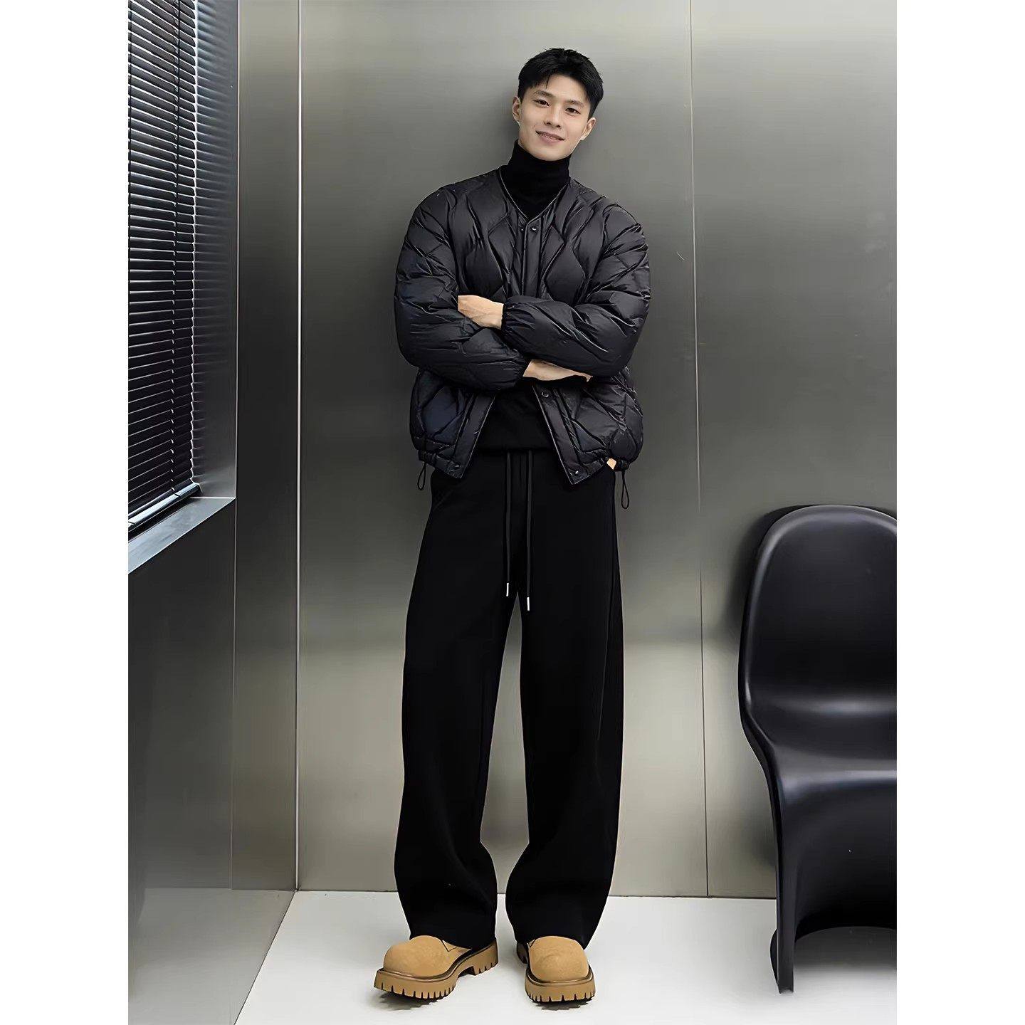黑色重磅加绒弯刀卫裤男款冬季垂感阔腿运动裤子松弛感宽松休闲裤
