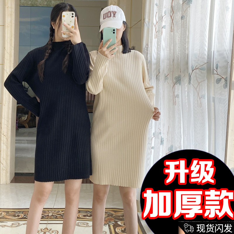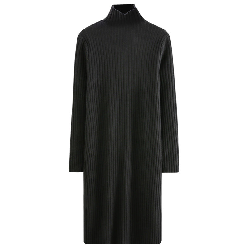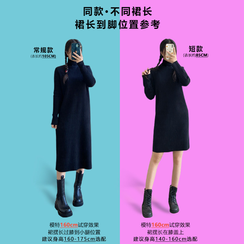 针织连衣裙女2025秋冬新款小个子中长款宽松半高领打底加绒毛衣裙