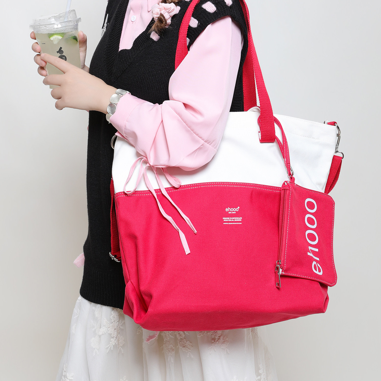 全棉帆布包大容量韩系文艺风带拉链结实大号单肩托特包学生斜挎包