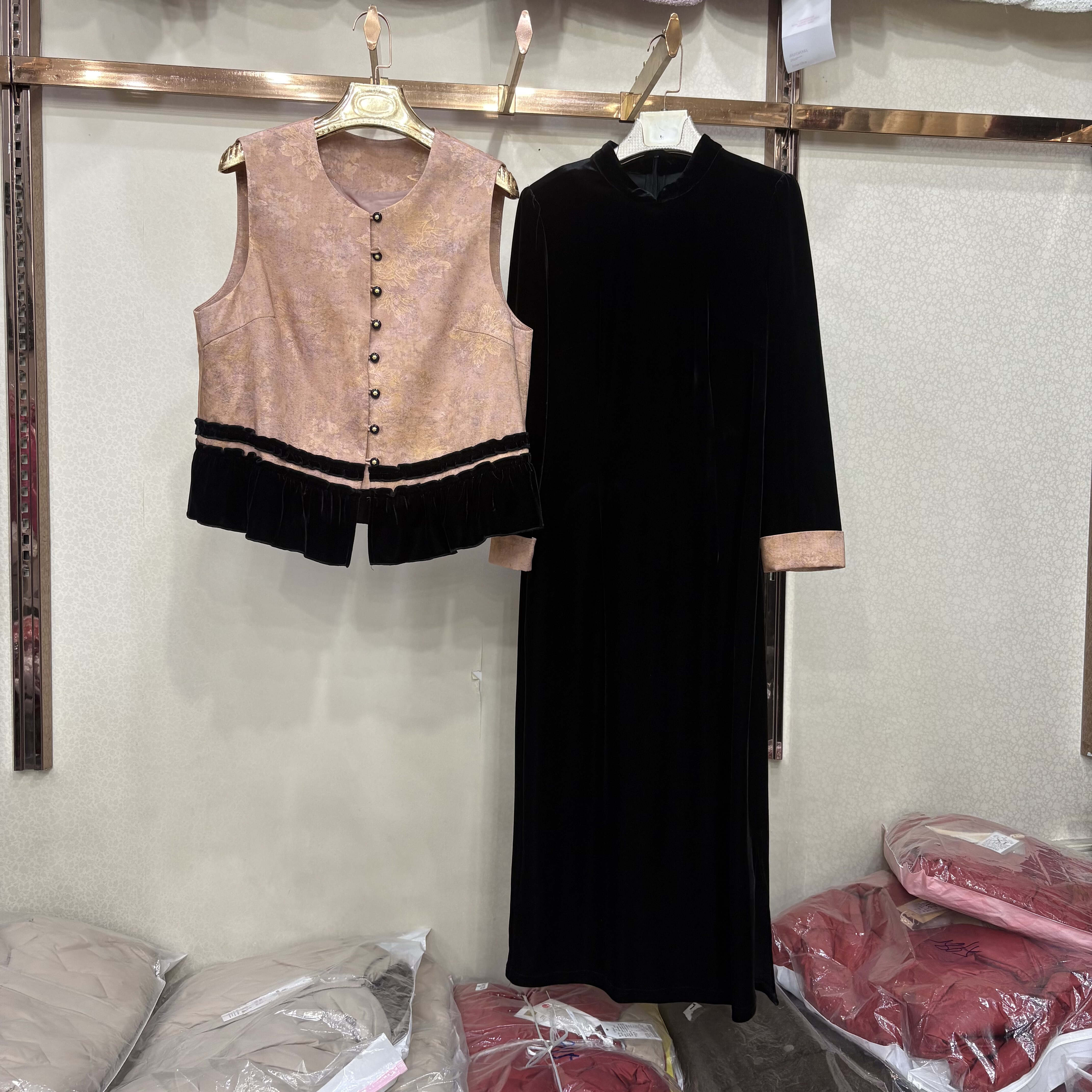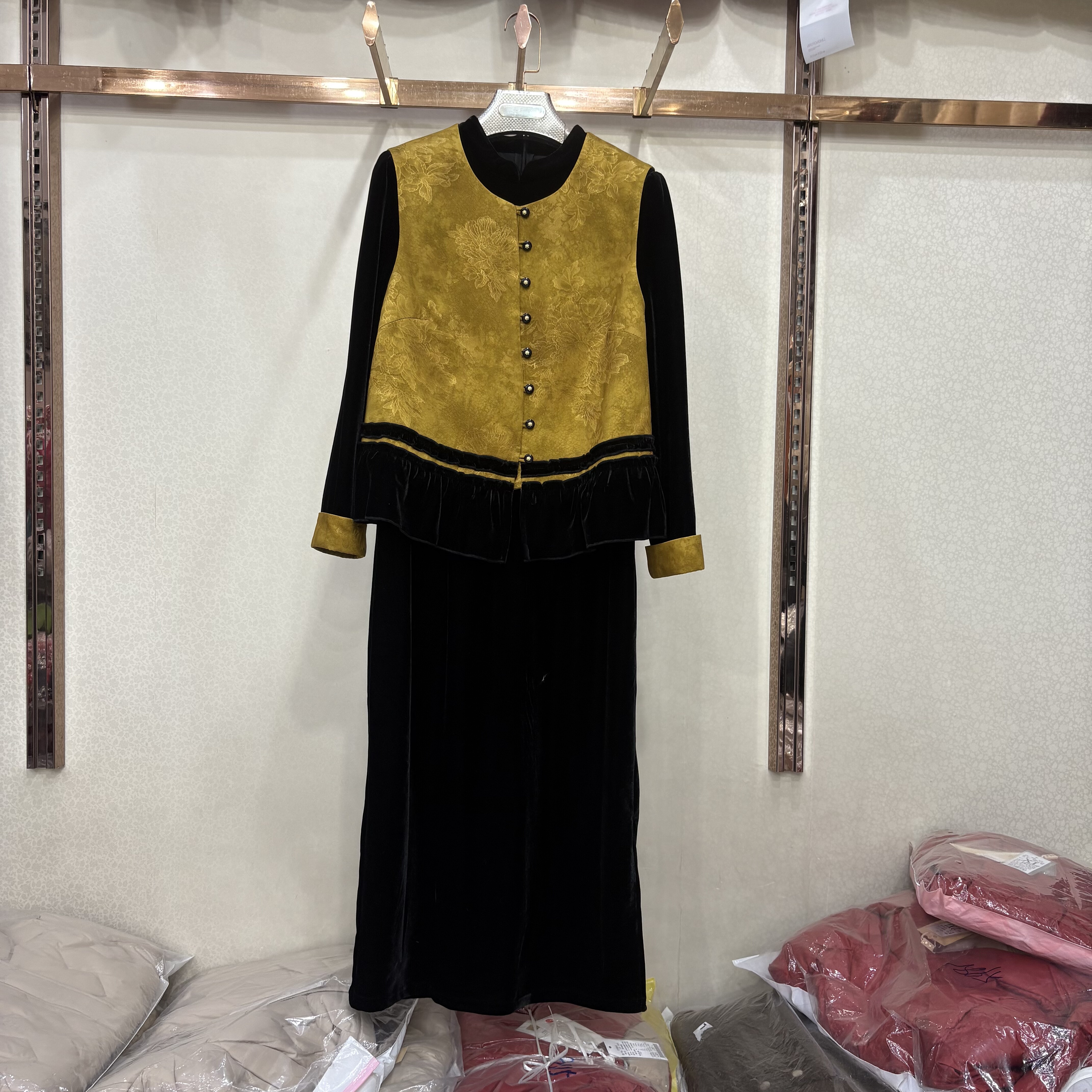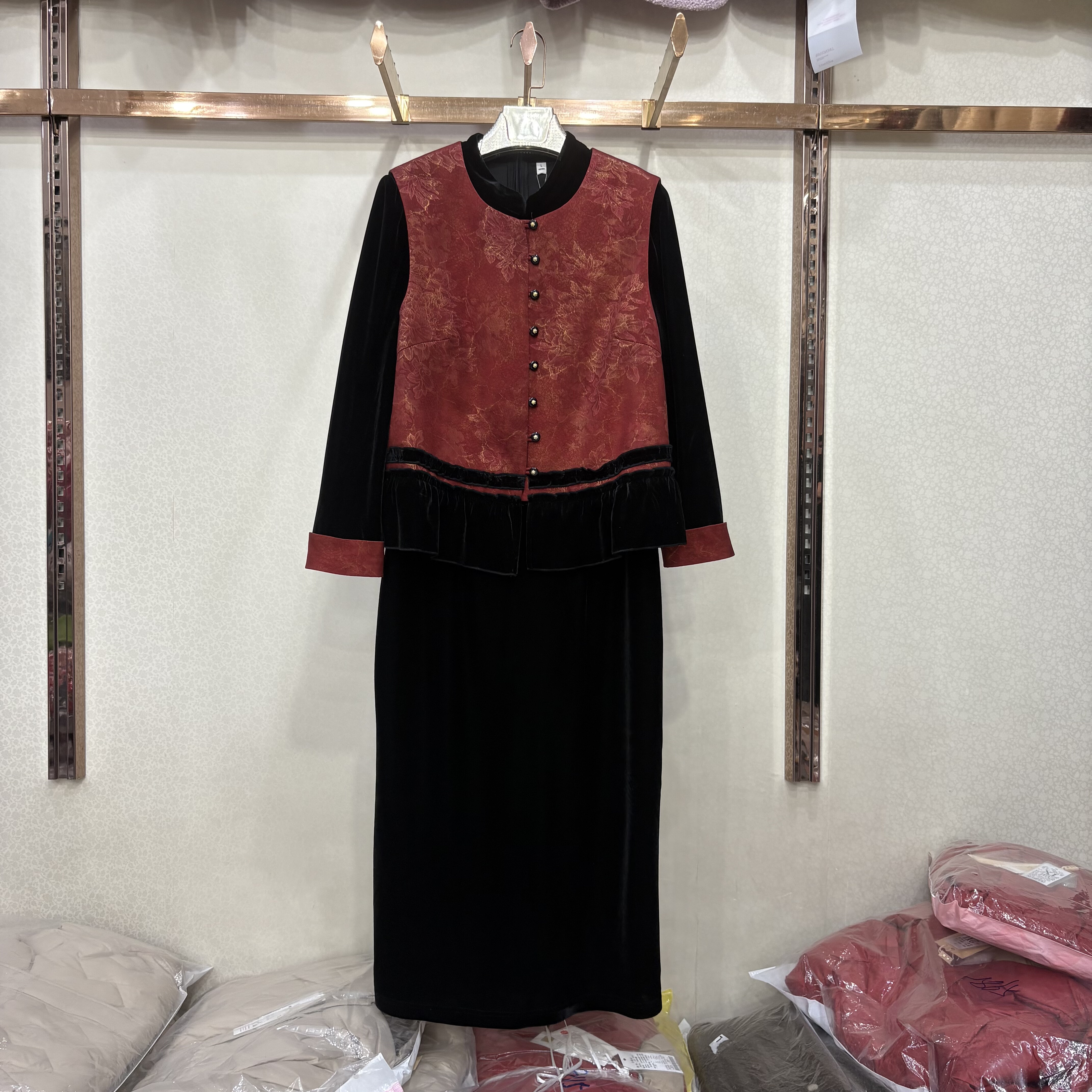 商场同款B9527正品2026春季新款轻奢新中式马甲+丝绒连衣裙套裙女