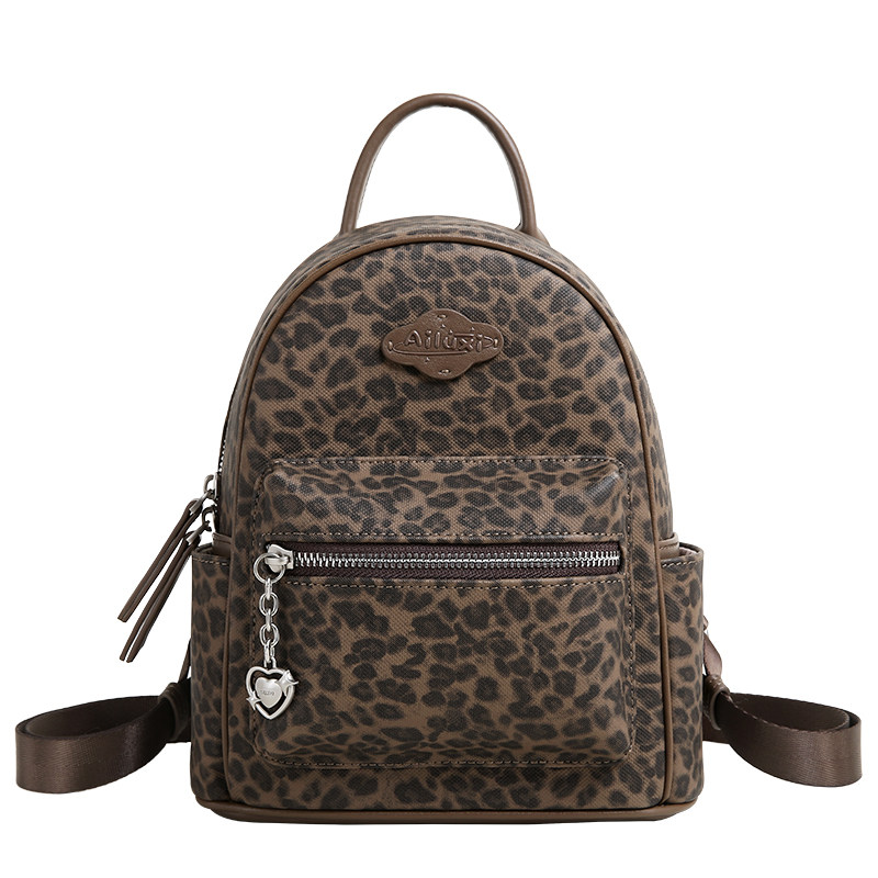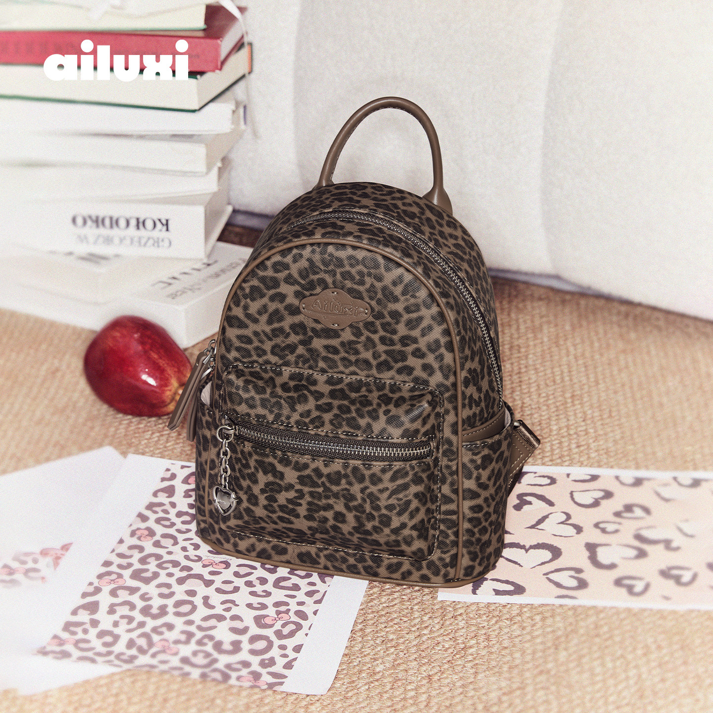 爱路喜双肩包包女款秋冬新款时尚棕色豹纹少女小背包轻便小型书包