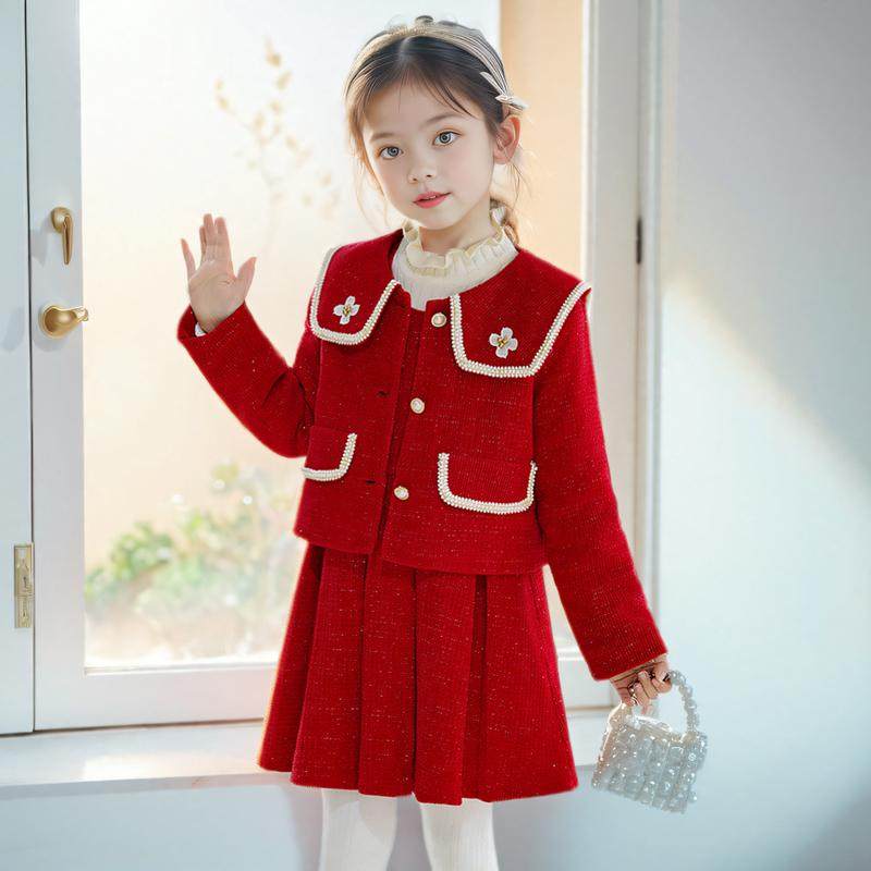 女童过年连衣裙儿童小香风新年小女孩套装公主裙宝宝冬季衣服裙子