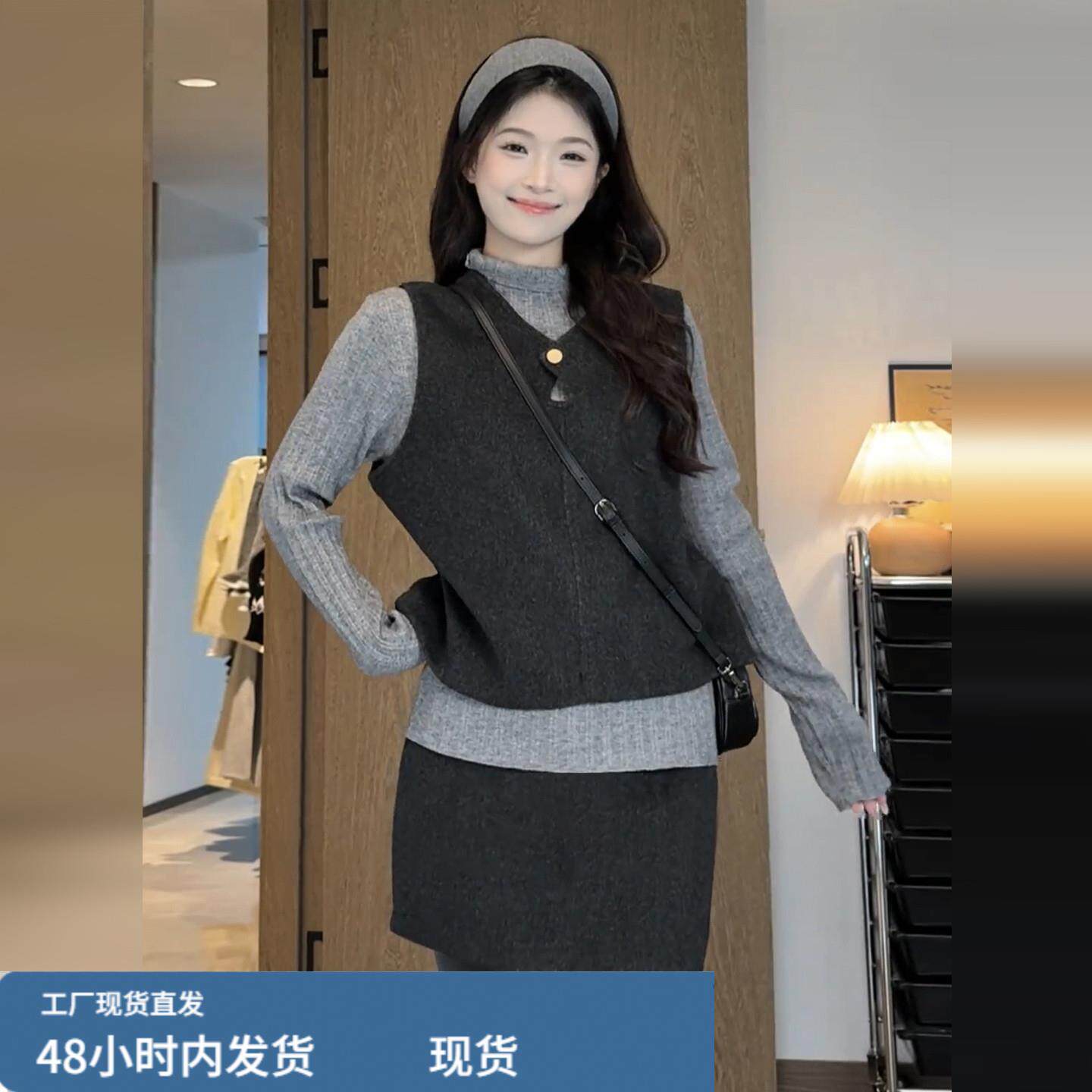 2025新款巨好看的冬装小个子连衣裙子女装秋冬季韩系穿搭短裙套装