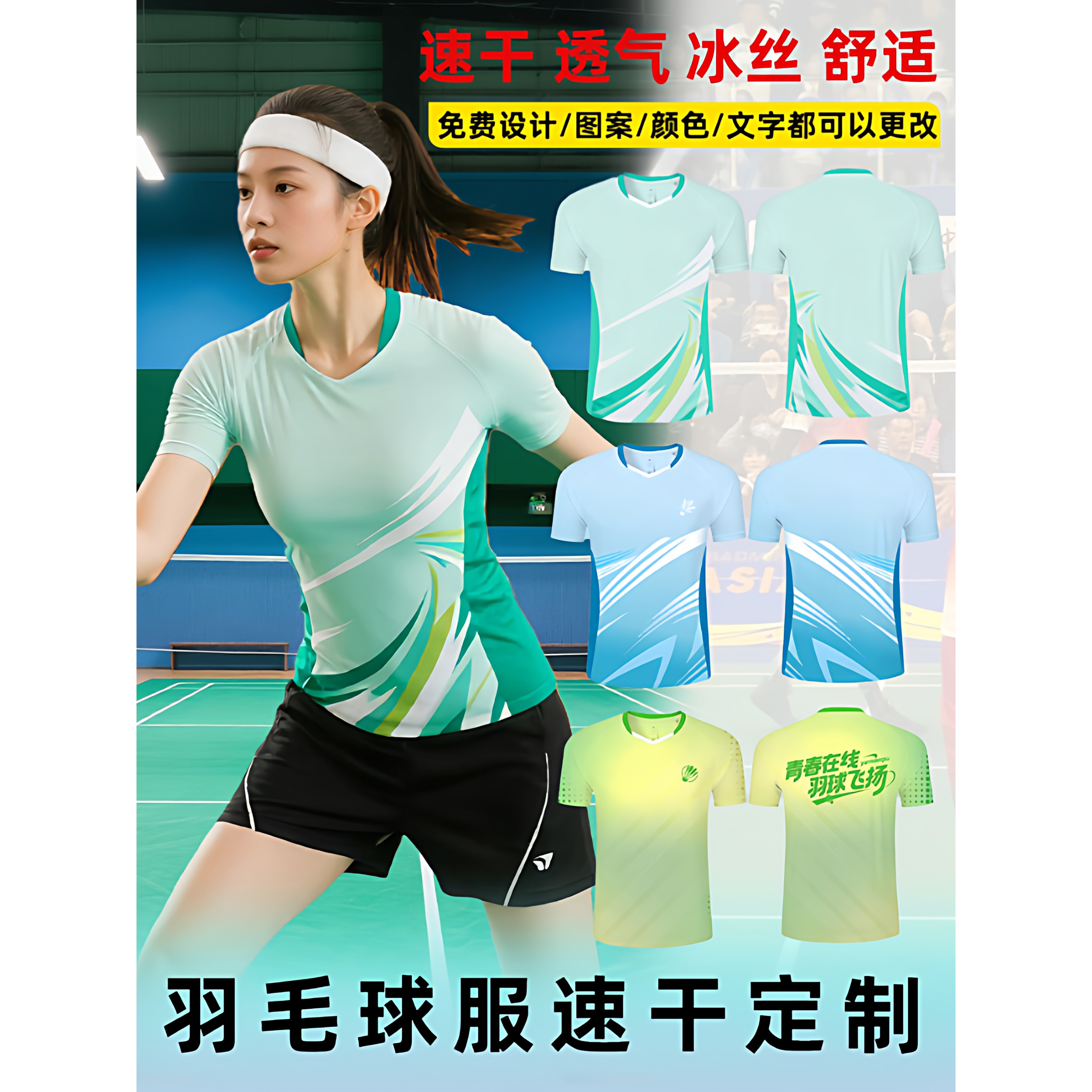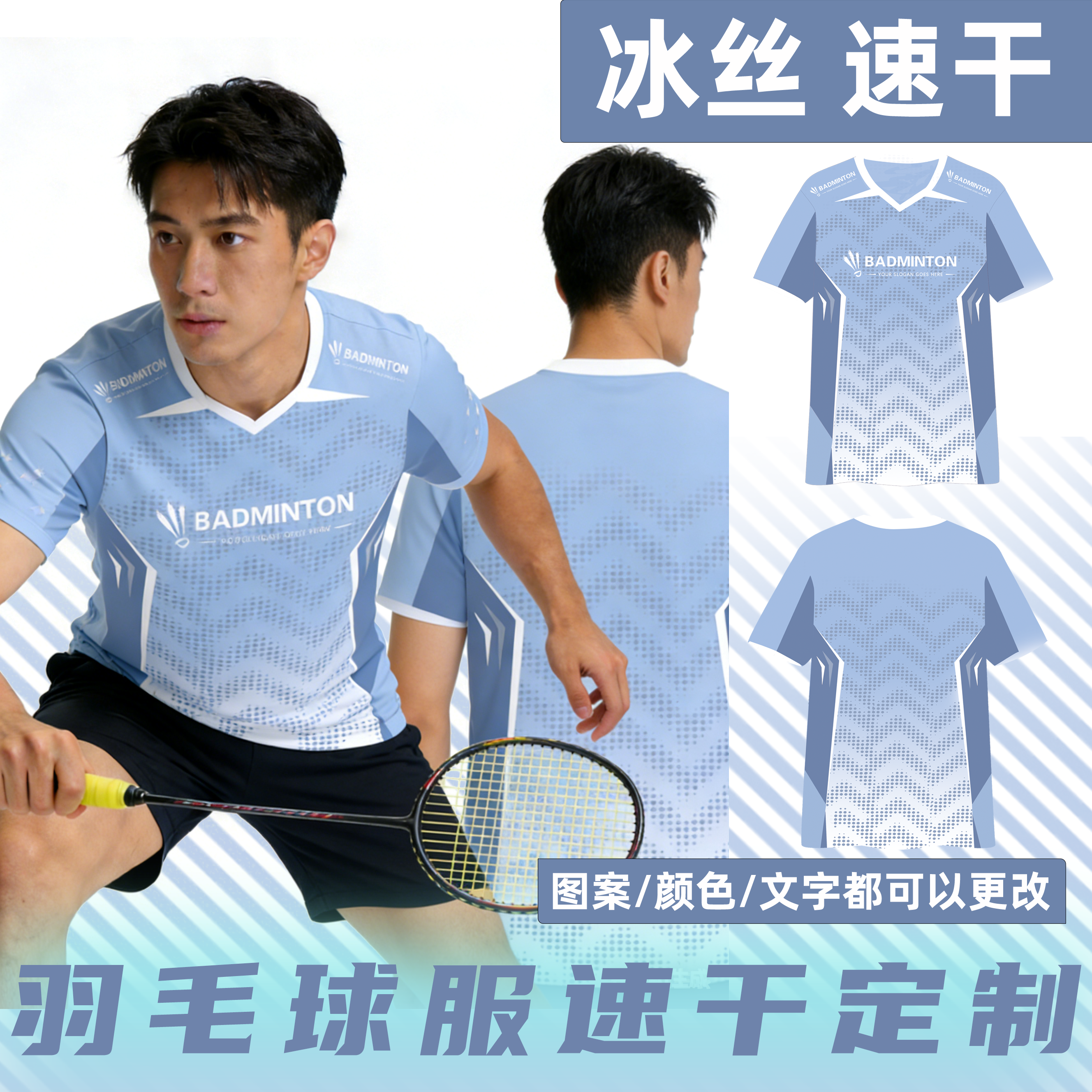 冰丝速干羽毛球服定制T恤套装短袖男女乒乓球气排球队训练服订制