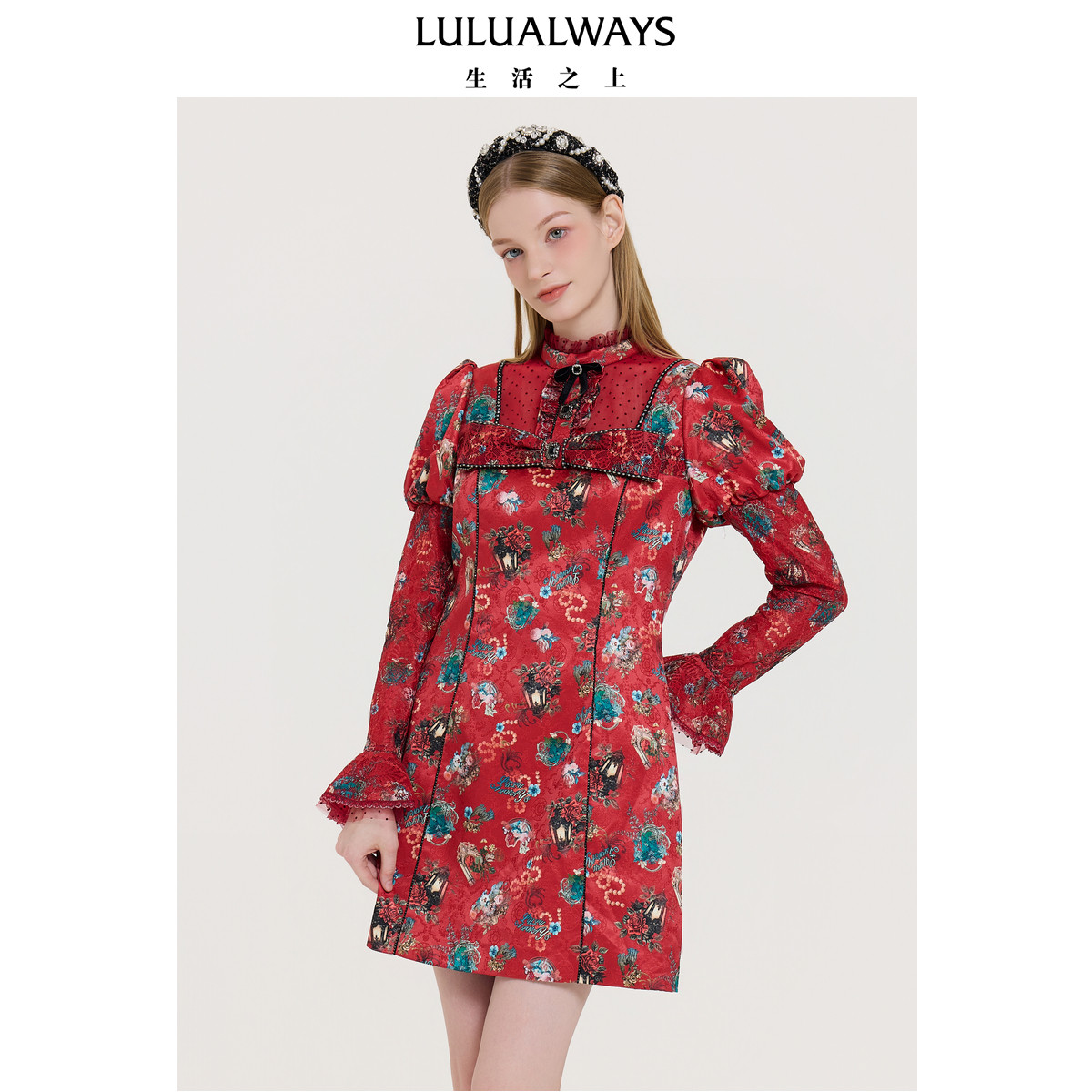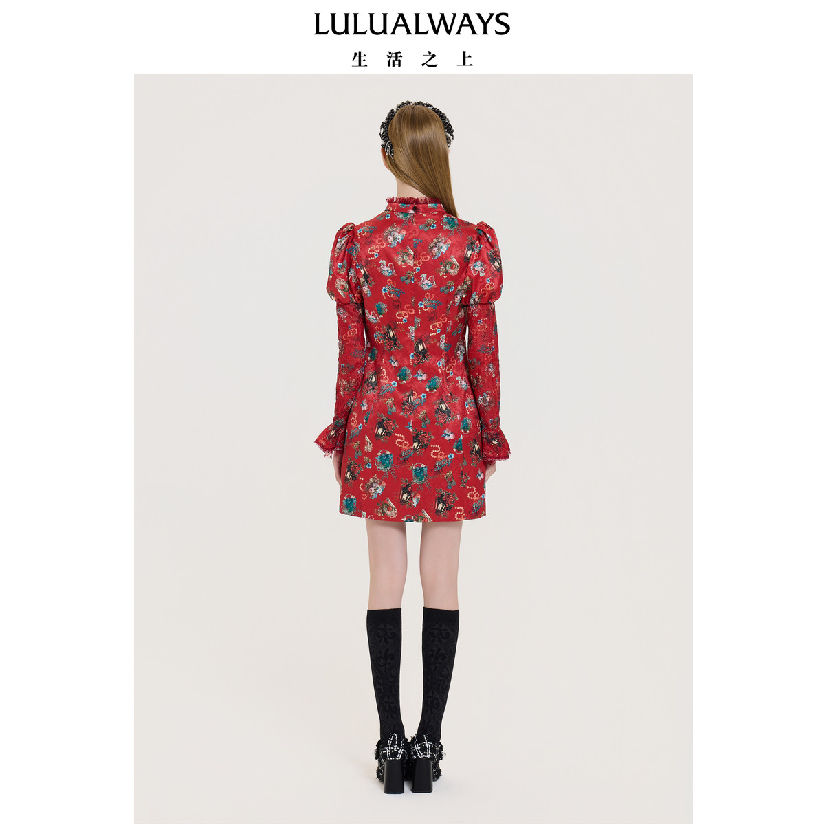 LULUALWAYS我爱露露25冬季新款华丽【盛世玫瑰】收腰短款女连衣裙